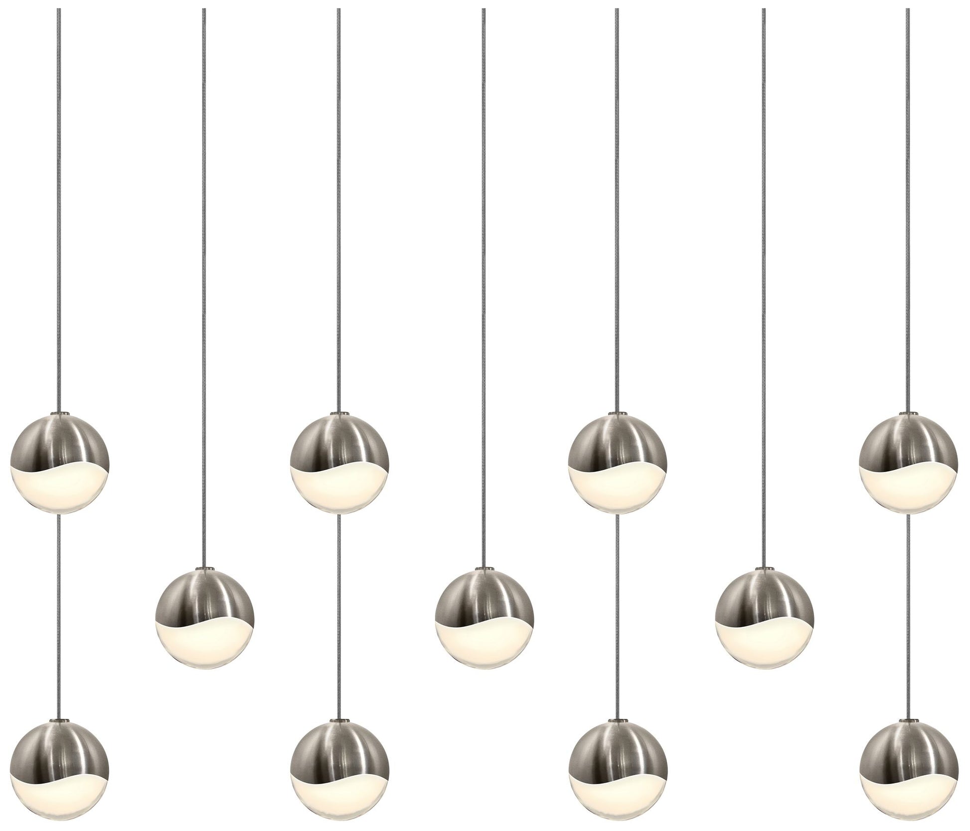 Grapes 36.25" Wide 11.Light Satin Nickel Small Rectangle LED Pendant
