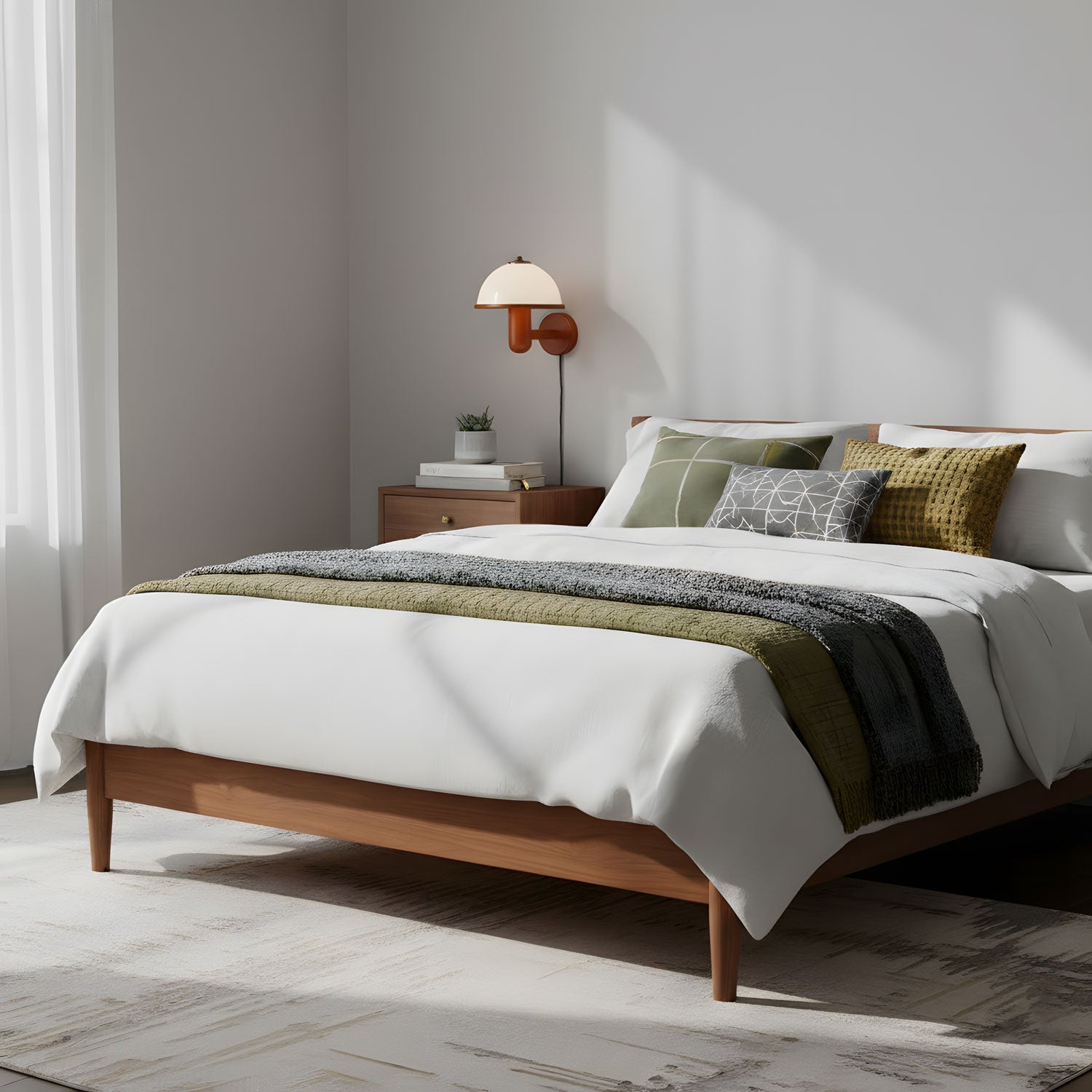 Featuring a white lampshade, this fixture effortlessly diffuses soft and gentle illumination, casting a warm glow that sets a soothing atmosphere. The lampshade's pristine color complements the oak wood, creating a harmonious blend of light and texture.