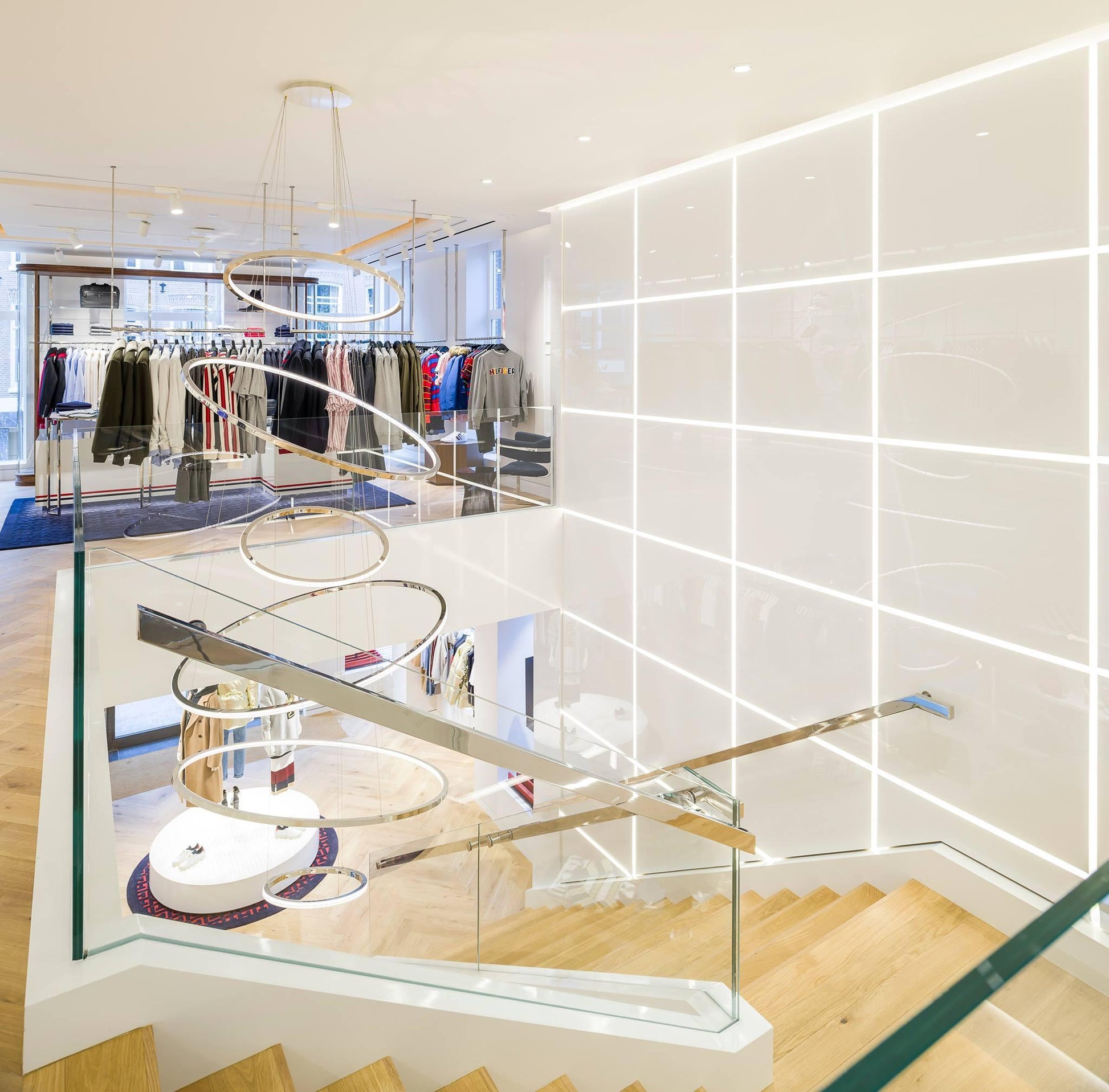 Hanging - Fully adjustable drop height on 1.2mm stainless steel suspension cables.