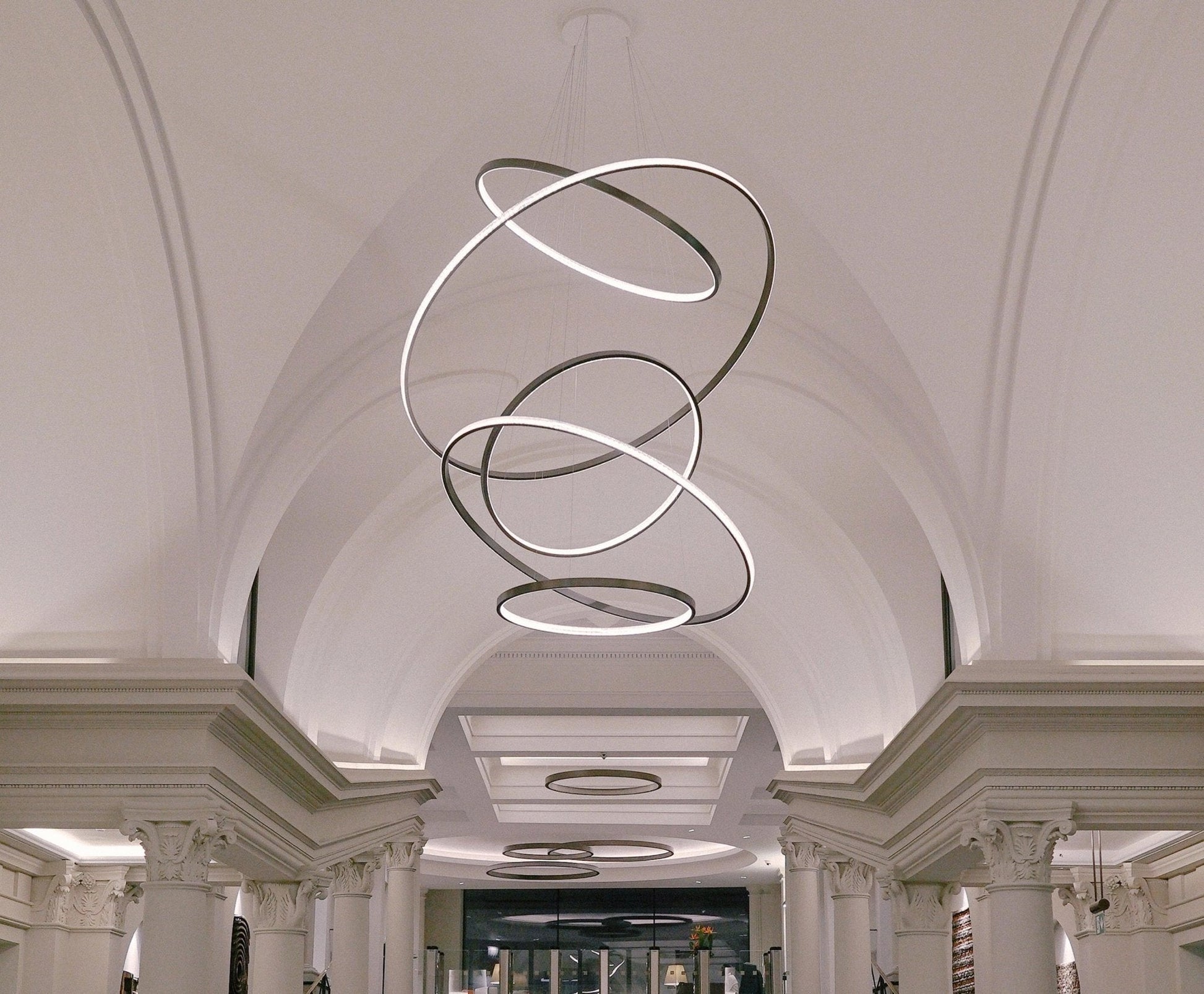 This iconic Serenitas Pendant draws inspiration from the serene lakes of Lohja, Finland. Celebrated with The International Design and Architecture Award for Best Pendant/Chandelier, Serenitas explores tranquility, space, and equilibrium. Its contemporary design blends simplicity with geometric elegance, creating a striking, balanced sculptural form that shifts with each perspective.