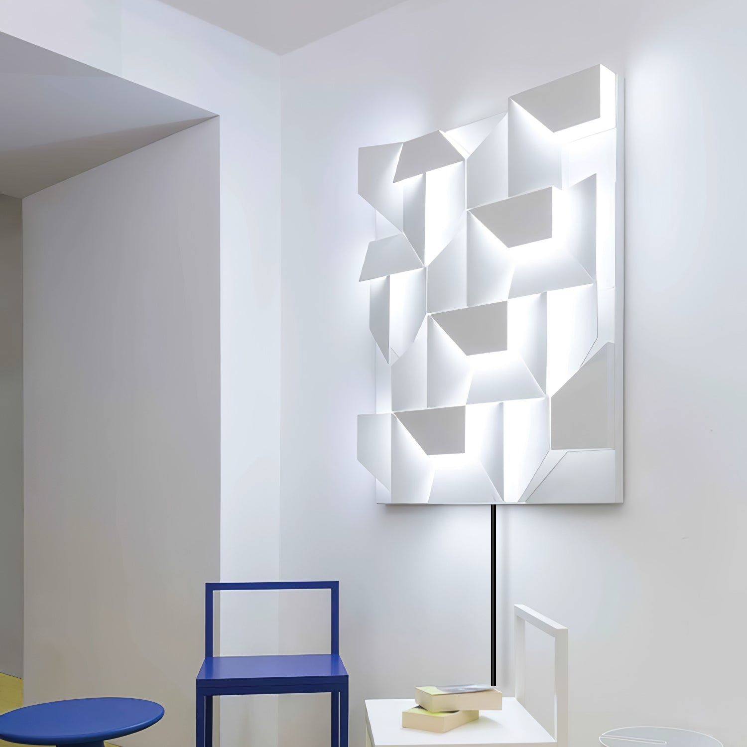 Wall shadows grand sconce series, create unusual luminous sets with LED diffused lighting. Available in different sizes, they are made of laser-cut aluminum and matt white painted.