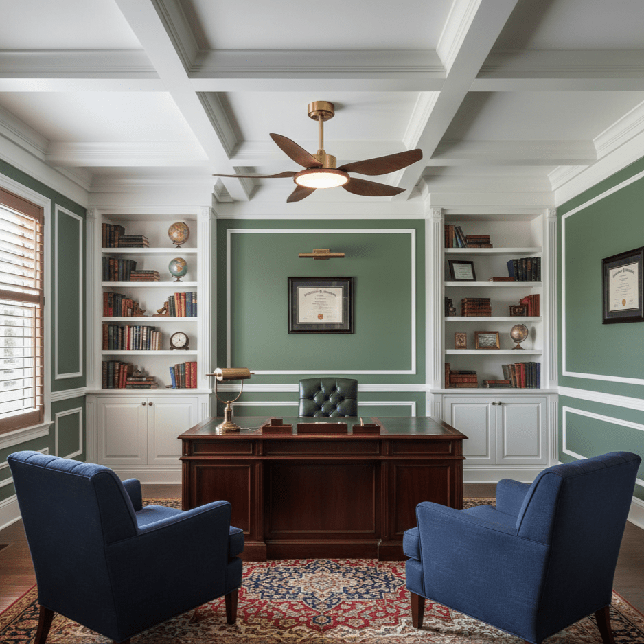 Named after the warm Mediterranean wind, the Sirocco Breeze ceiling fan combines sculpted walnut blades with a brushed brass center to bring both function and refined style. Its integrated LED disc offers ambient lighting while the five-blade design circulates air quietly and efficiently — a perfect balance of form and performance.