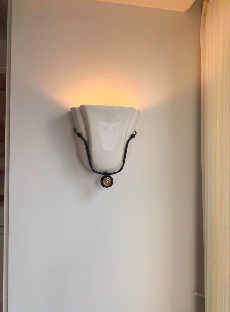 Elegant and sculptural, the Solenne Shell Wall Sconce by sunweartfurniture draws inspiration from the fluid lines of nature and classical design. Its soft, curved ceramic body resembles a blooming flower or seashell, finished in a warm, blush-toned glaze that radiates subtle sophistication. A pair of blackened metal arms gently cradle the form, adding contrast and framing the organic silhouette with architectural balance.