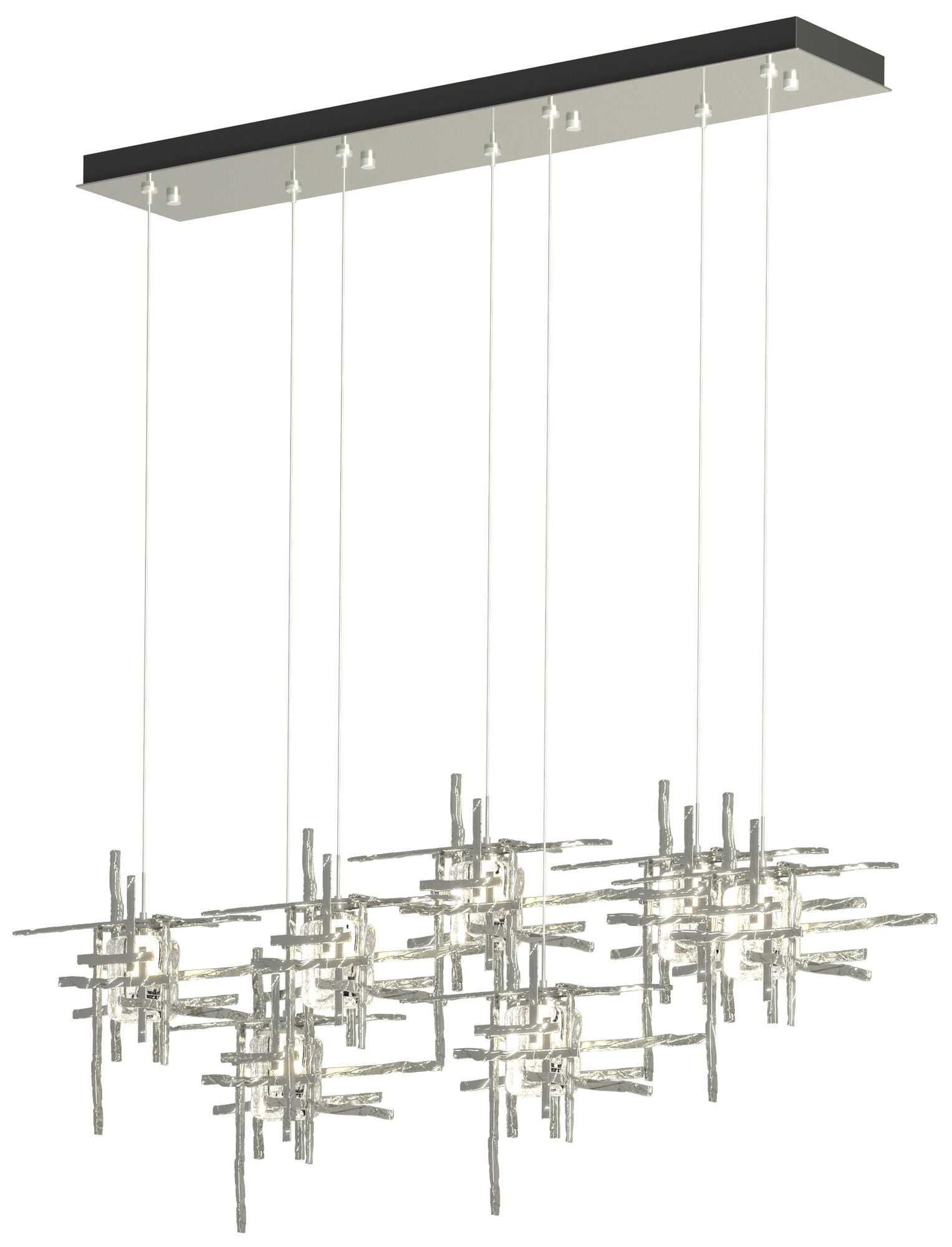 Tura 53.6"W 7-Light Rectangular Sterling Standard Pendant w/ Seeded Sh