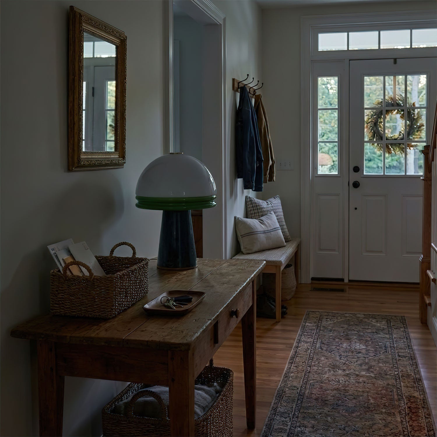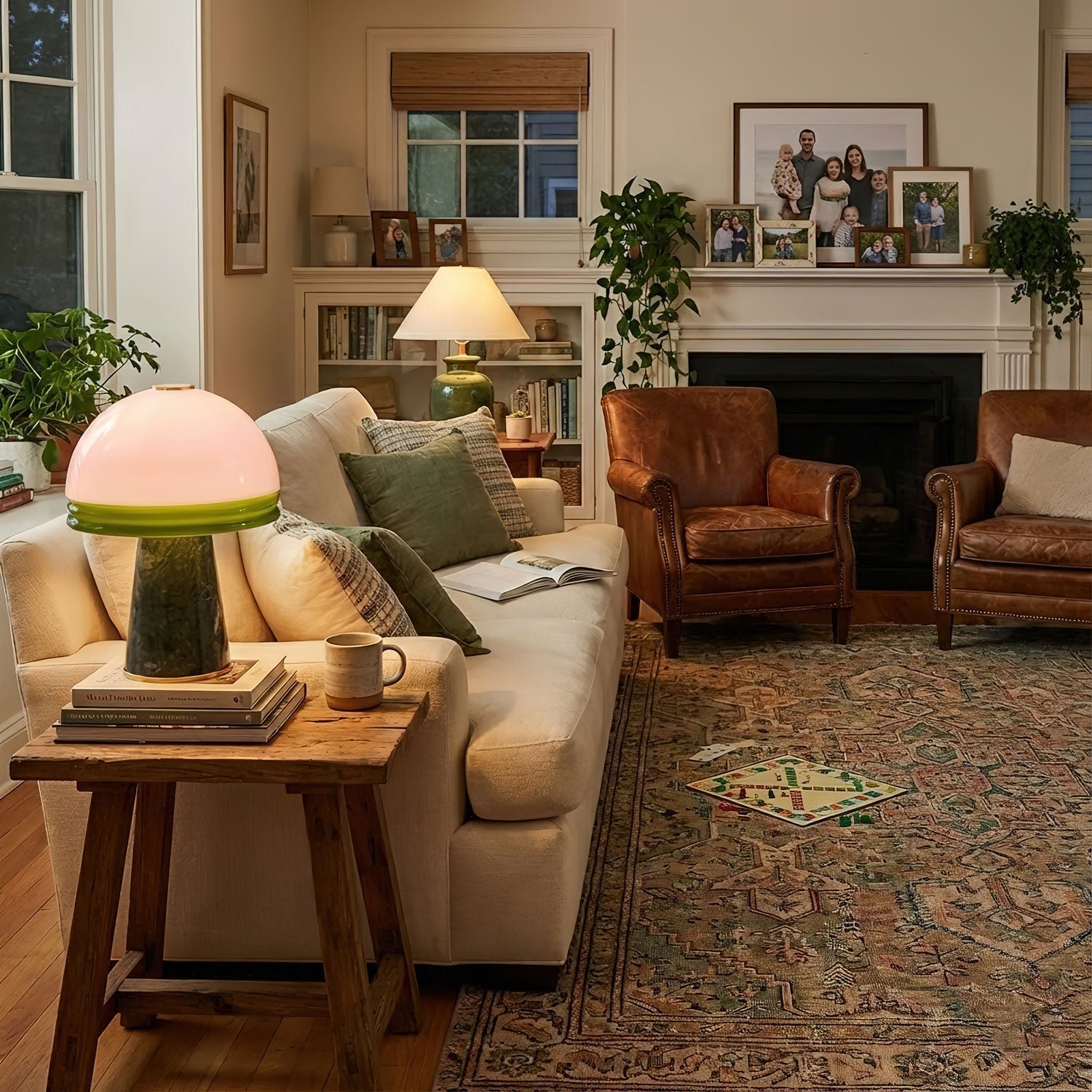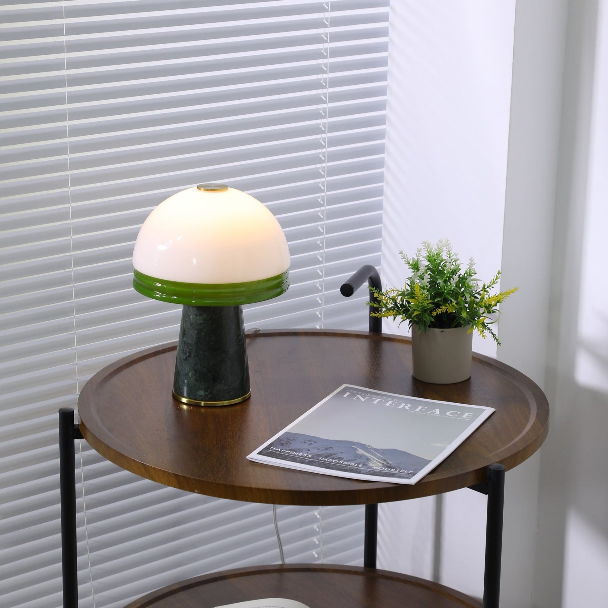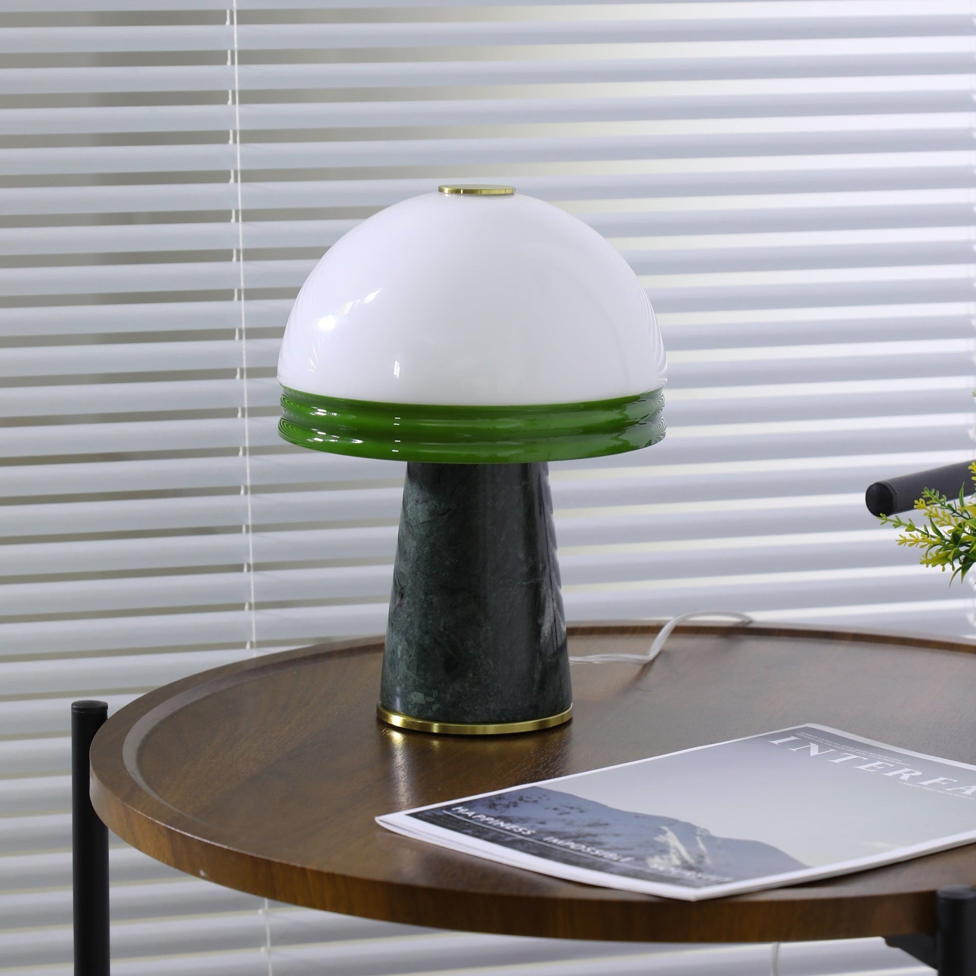 The Verdura Dome Small Table Lamp by sunweartfurniture is a refined fusion of natural stone and artistic glass. Its smooth dome-shaped shade, accented with a green glass rim, rests atop a solid marble base with brass detailing. Balancing organic texture with modern elegance, this lamp creates a warm, inviting glow—perfect for elevating living rooms, bedrooms, or stylish workspaces with timeless sophistication.