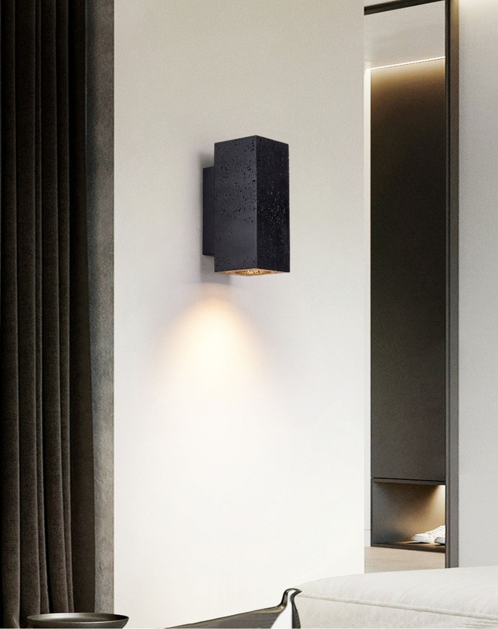 The Volkris Wall Lamp embodies a quiet architectural presence with its solid, sculpted block form. Crafted from textured stone, its porous black surface adds depth and character, while the hidden light source emits a soft, downward glow. Minimal, monolithic, and undeniably modern, this piece brings a refined, sculptural accent to hallways, bedrooms, and contemporary living spaces.