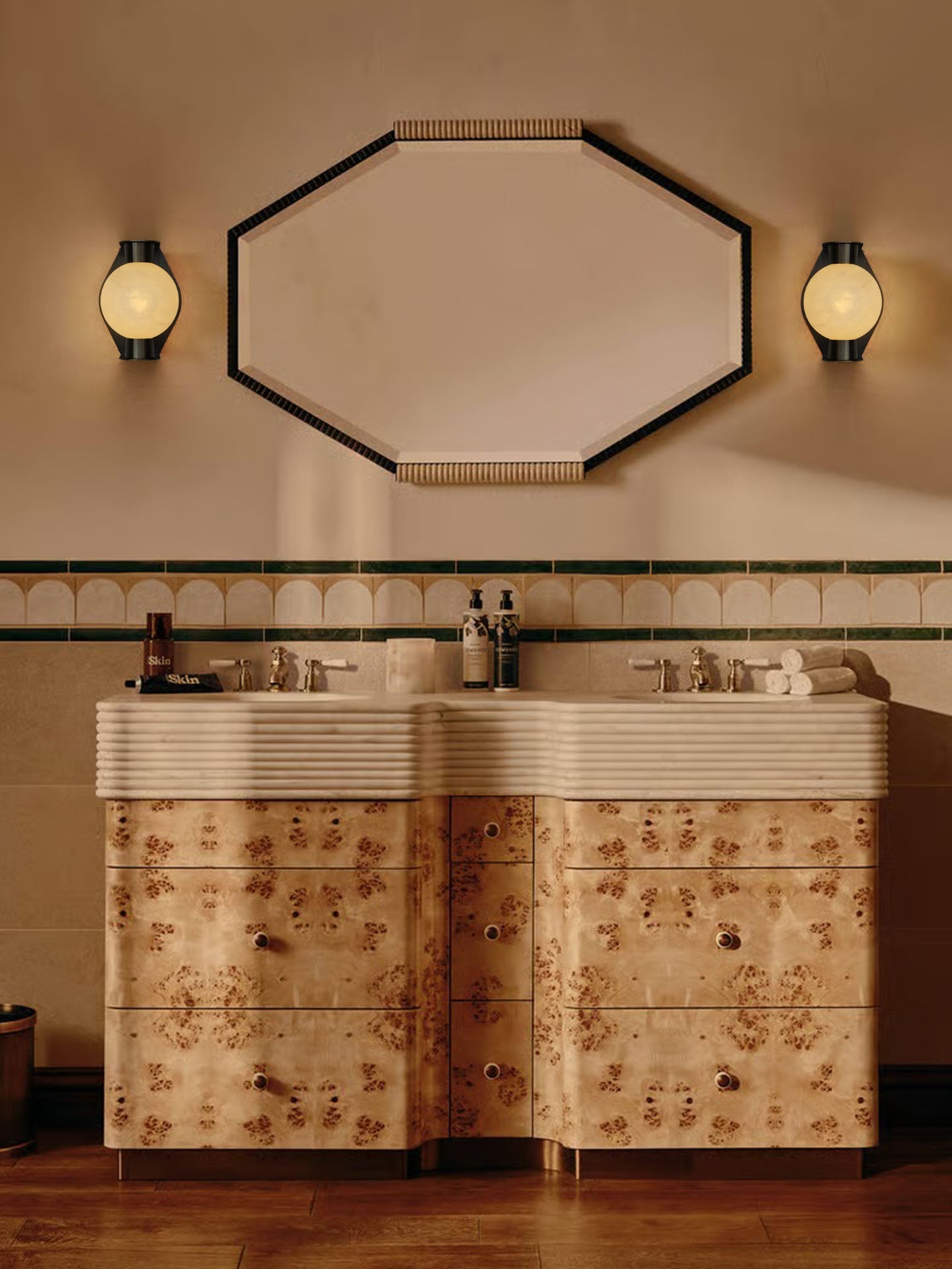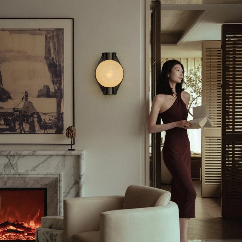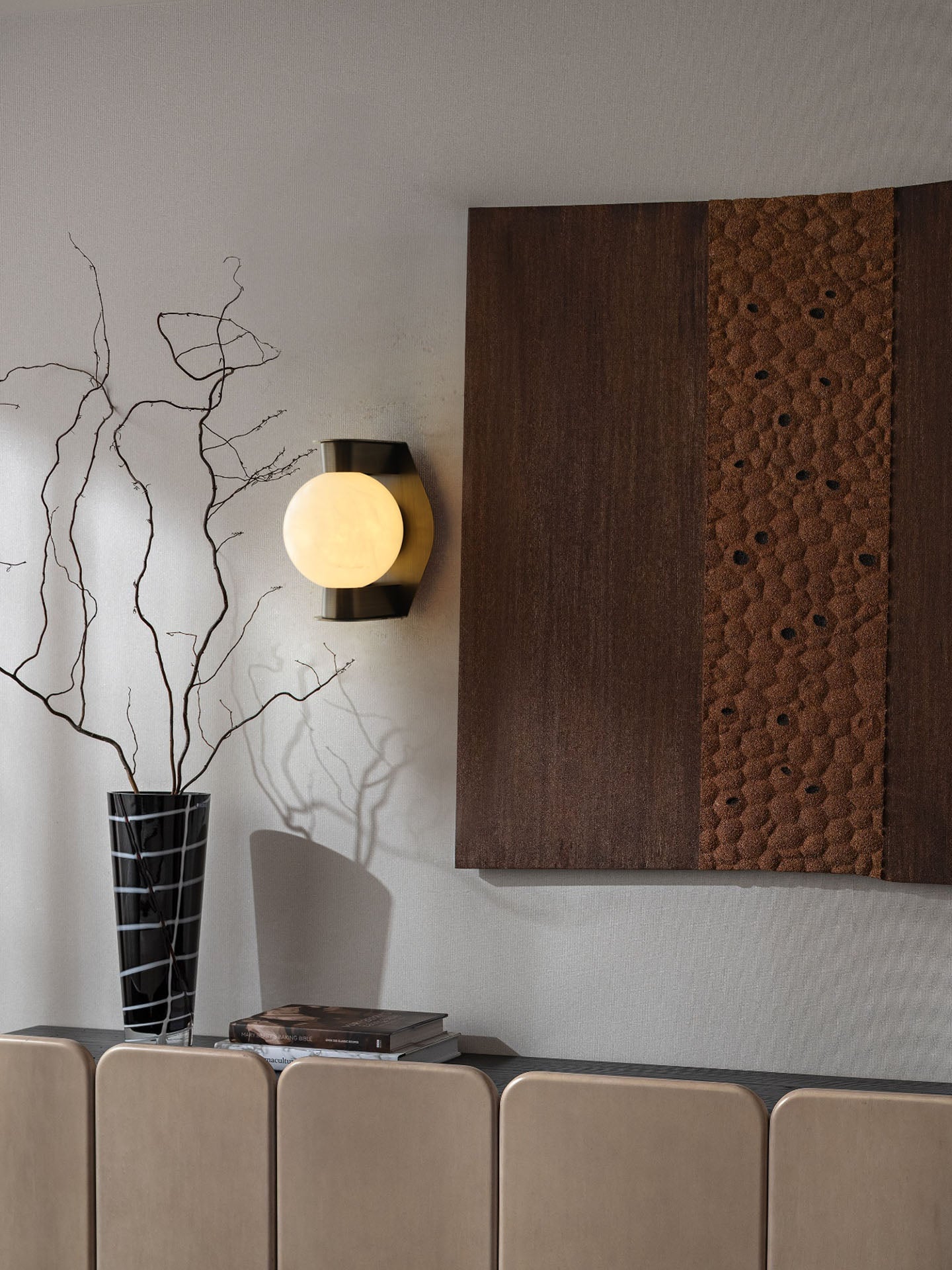 Discover the sunweartfurniture Alabaster Orb Sconce – a fusion of timeless elegance and modern design. This exquisite wall light features a genuine alabaster sphere, celebrated for its unique natural veining and exceptional light diffusion, casting a warm, ambient glow. Expertly cradled by a sculptural aged brass frame, it offers a sophisticated architectural accent. Perfect for adding luxurious warmth to bedrooms, hallways, or living areas, this artisan-crafted sconce is a statement piece, blending natural beauty with refined craftsmanship. Elevate your interior with its soft luminescence and distinctive charm.