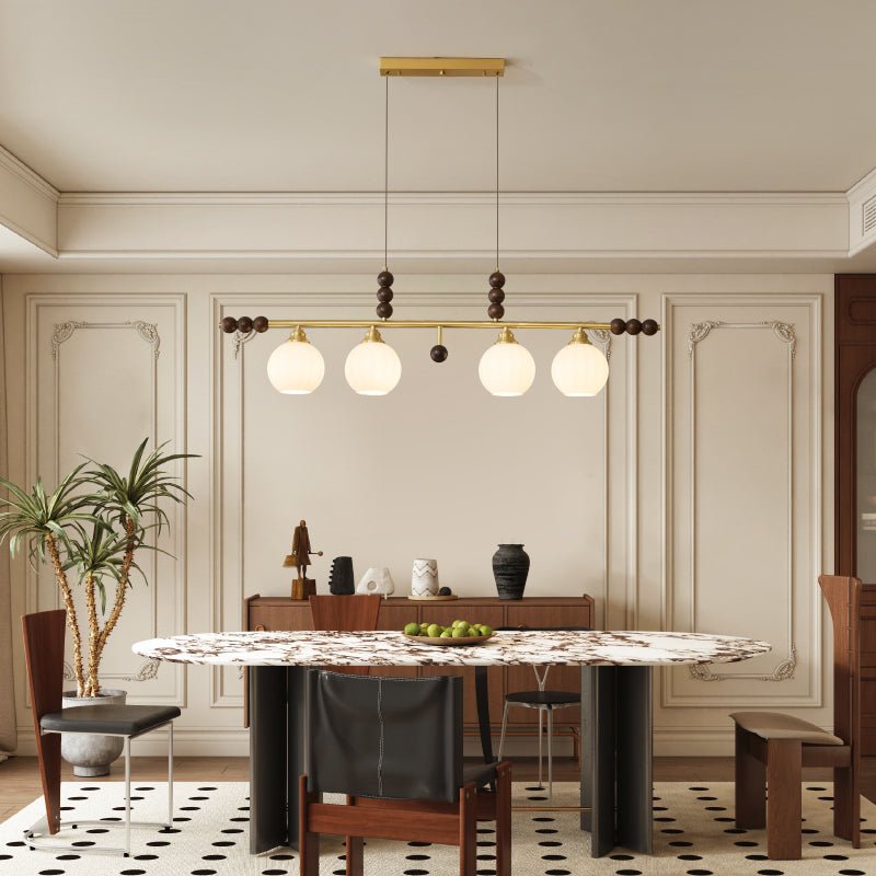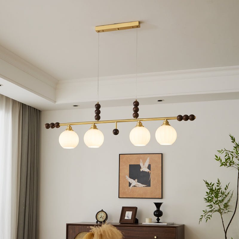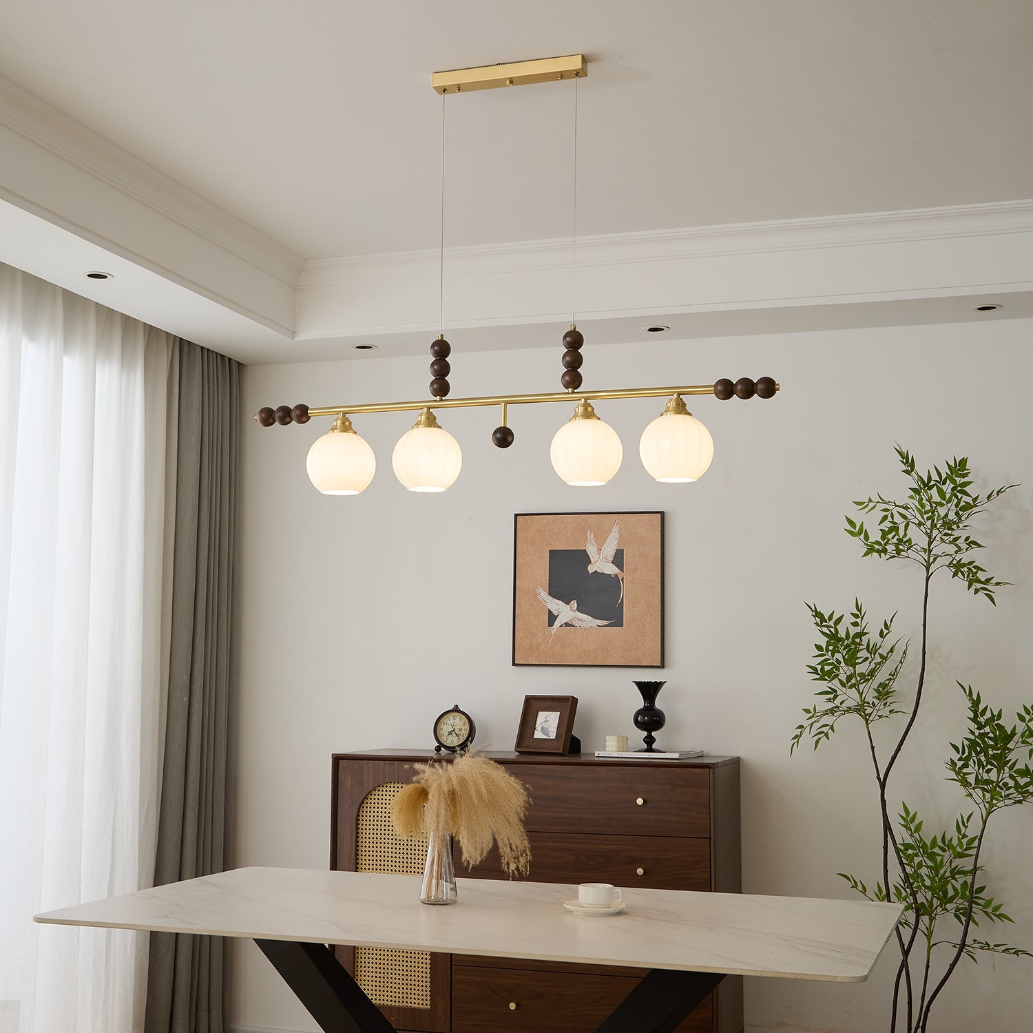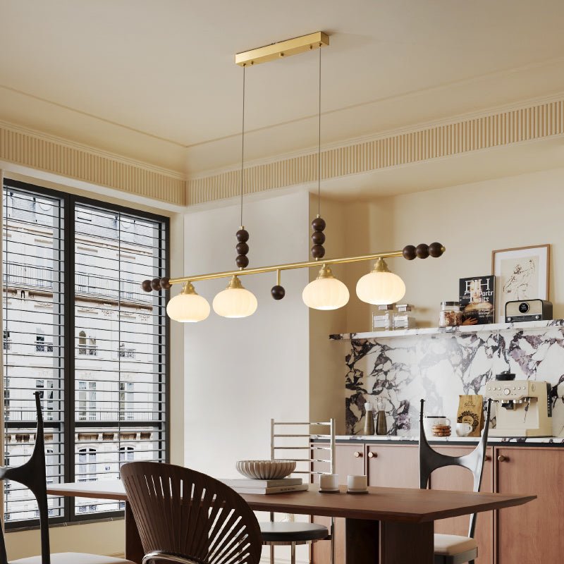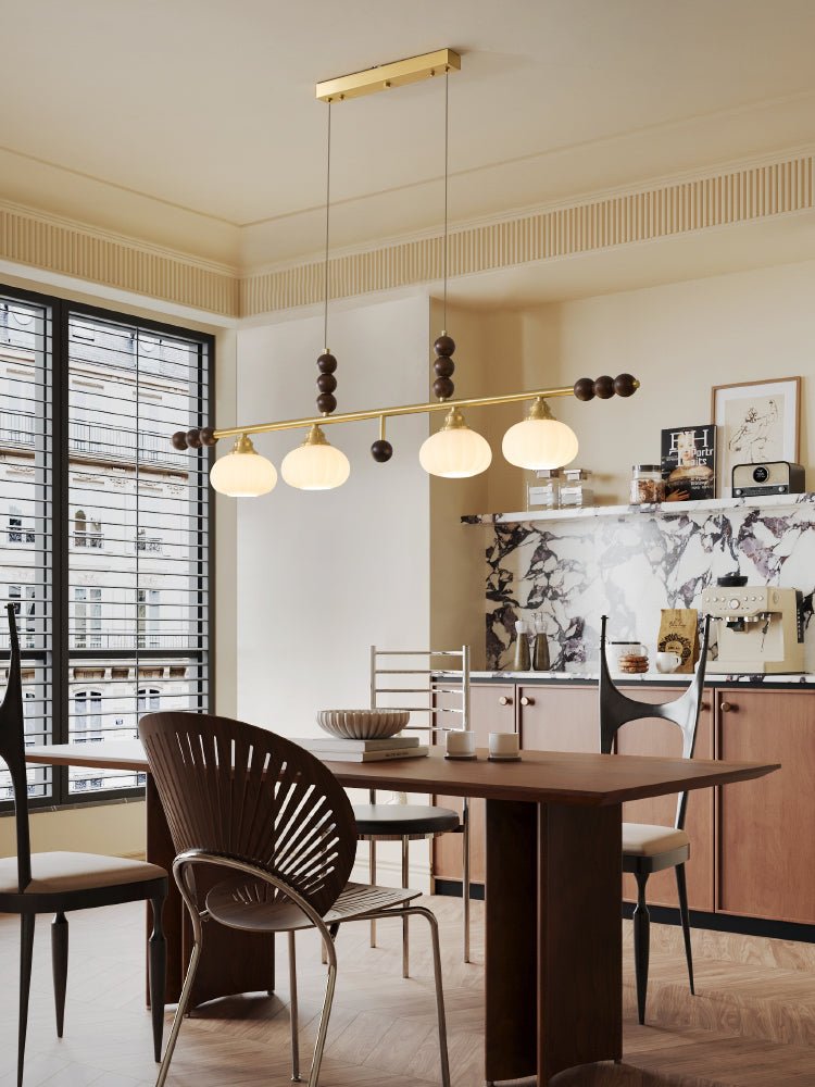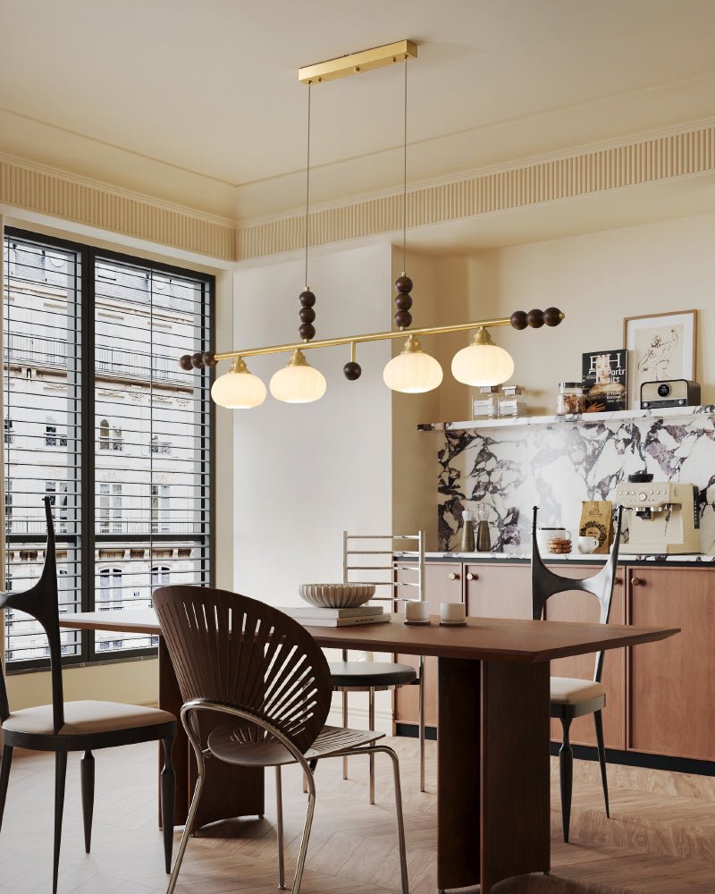 A sophisticated blend of iron, glass, and wood, the Altair Island Light by sunweartfurniture embodies celestial elegance with its perfectly balanced linear design. Featuring opal glass globes, warm brass tones, and intricate wooden accents, this fixture brings harmony and refinement to any space. Ideal for dining areas or kitchen islands, it merges modern minimalism with timeless craftsmanship.