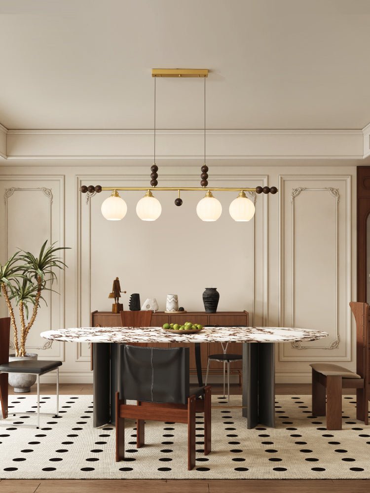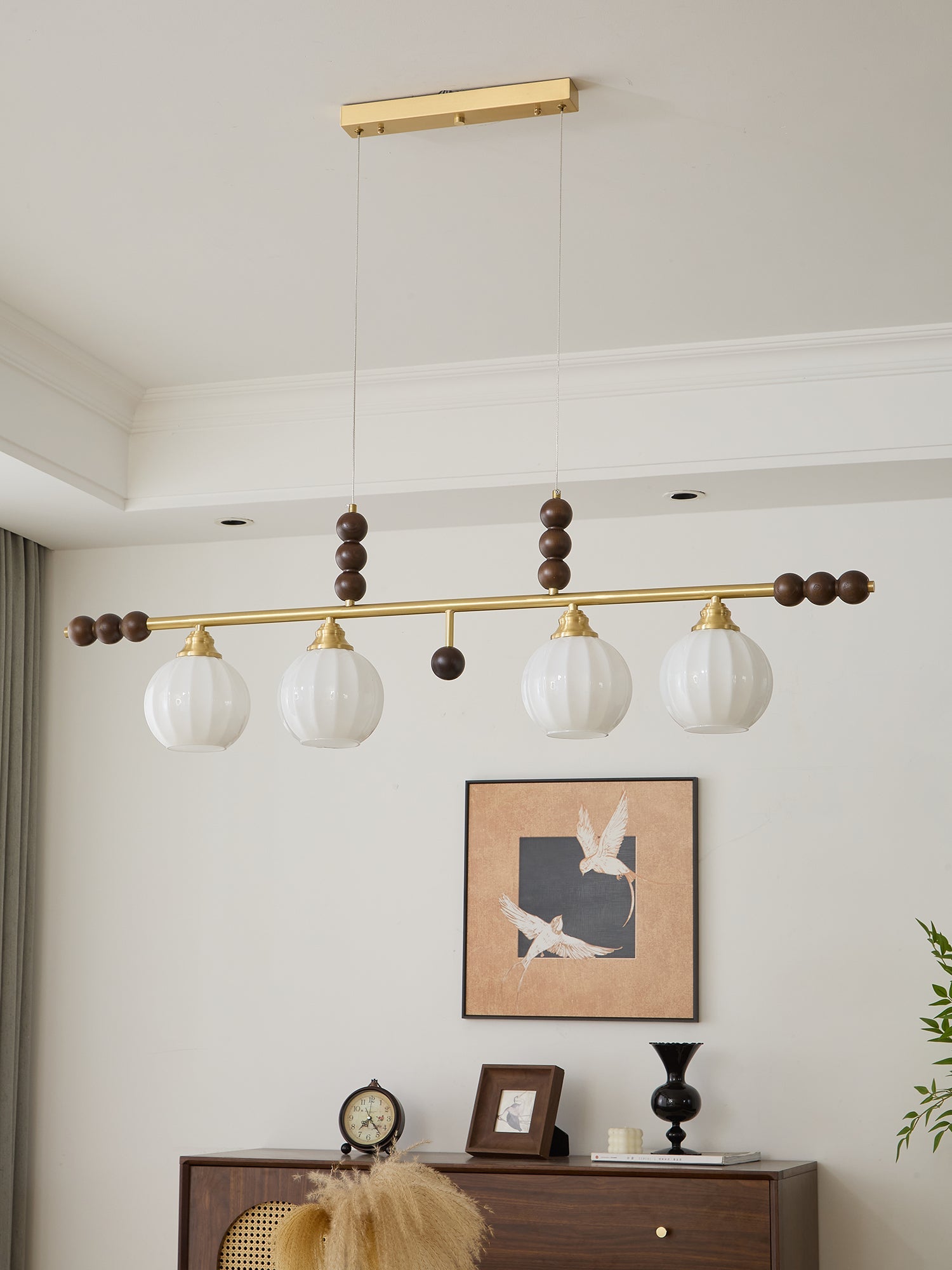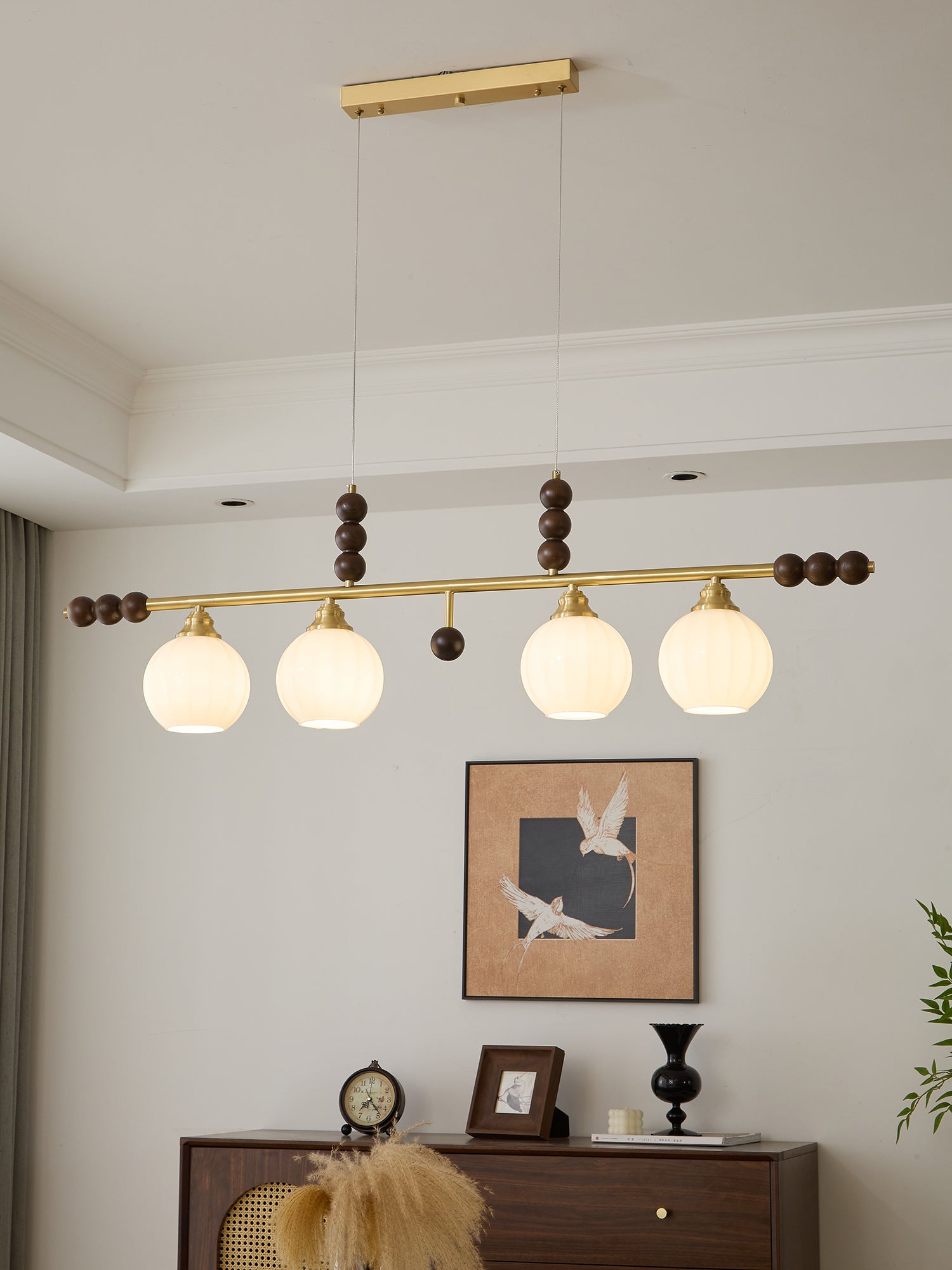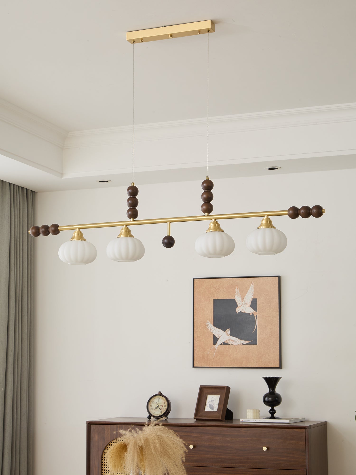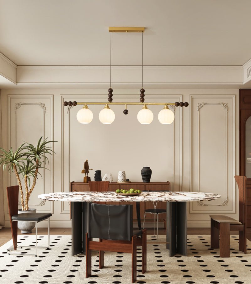 A sophisticated blend of iron, glass, and wood, the Altair Island Light by sunweartfurniture embodies celestial elegance with its perfectly balanced linear design. Featuring opal glass globes, warm brass tones, and intricate wooden accents, this fixture brings harmony and refinement to any space. Ideal for dining areas or kitchen islands, it merges modern minimalism with timeless craftsmanship.