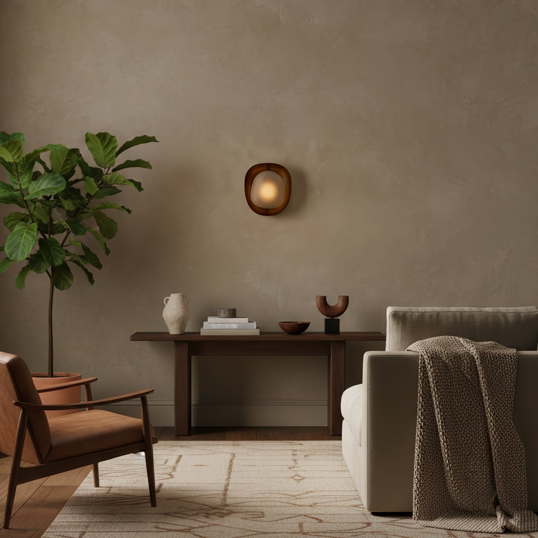 The Amorphous Wall Lamp showcases a free - form, rounded shape. It adopts a dual - tone design, with a darker outer layer and a lighter, frosted inner part that emits a cozy, warm light. Its sleek and understated appearance makes it a perfect choice for adding a touch of modern sophistication to interior spaces.