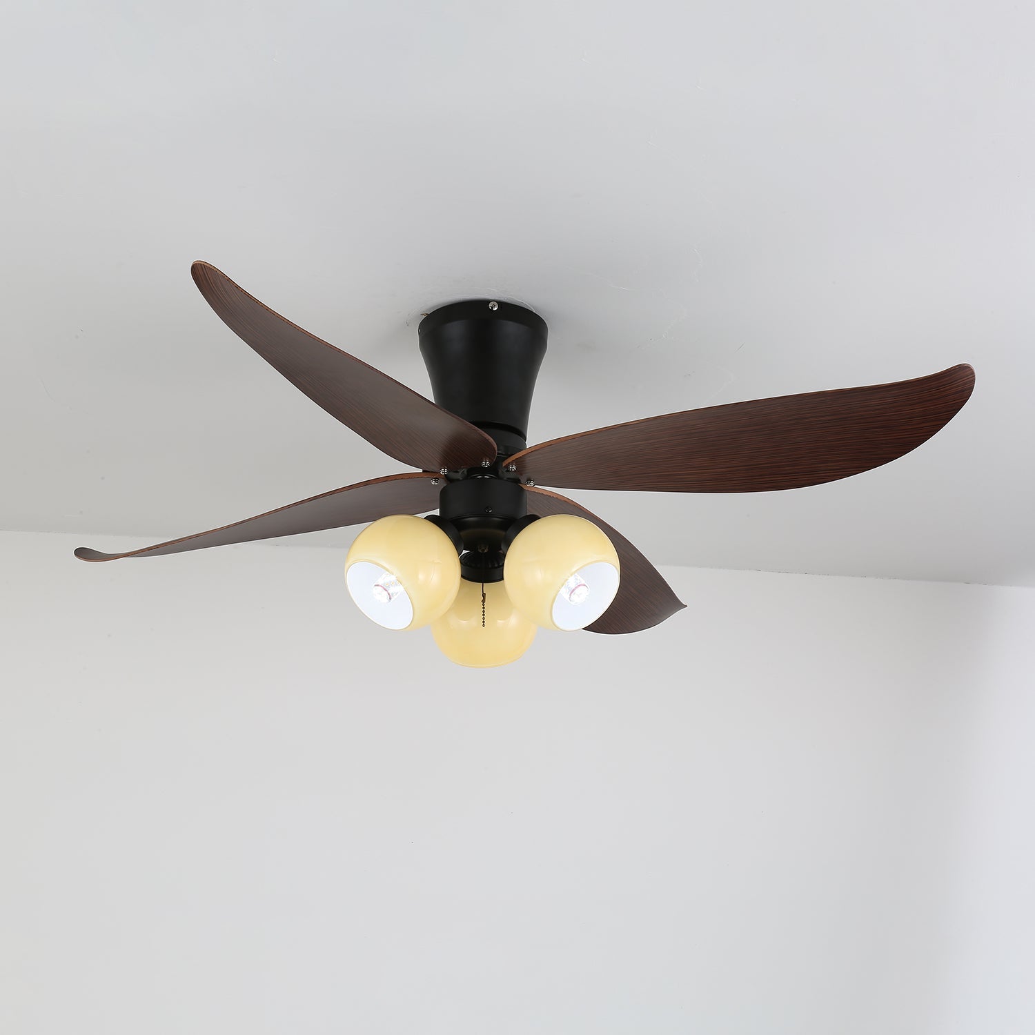 Materials: Metal frame, ABS blades, glass shade, pure copper motor.