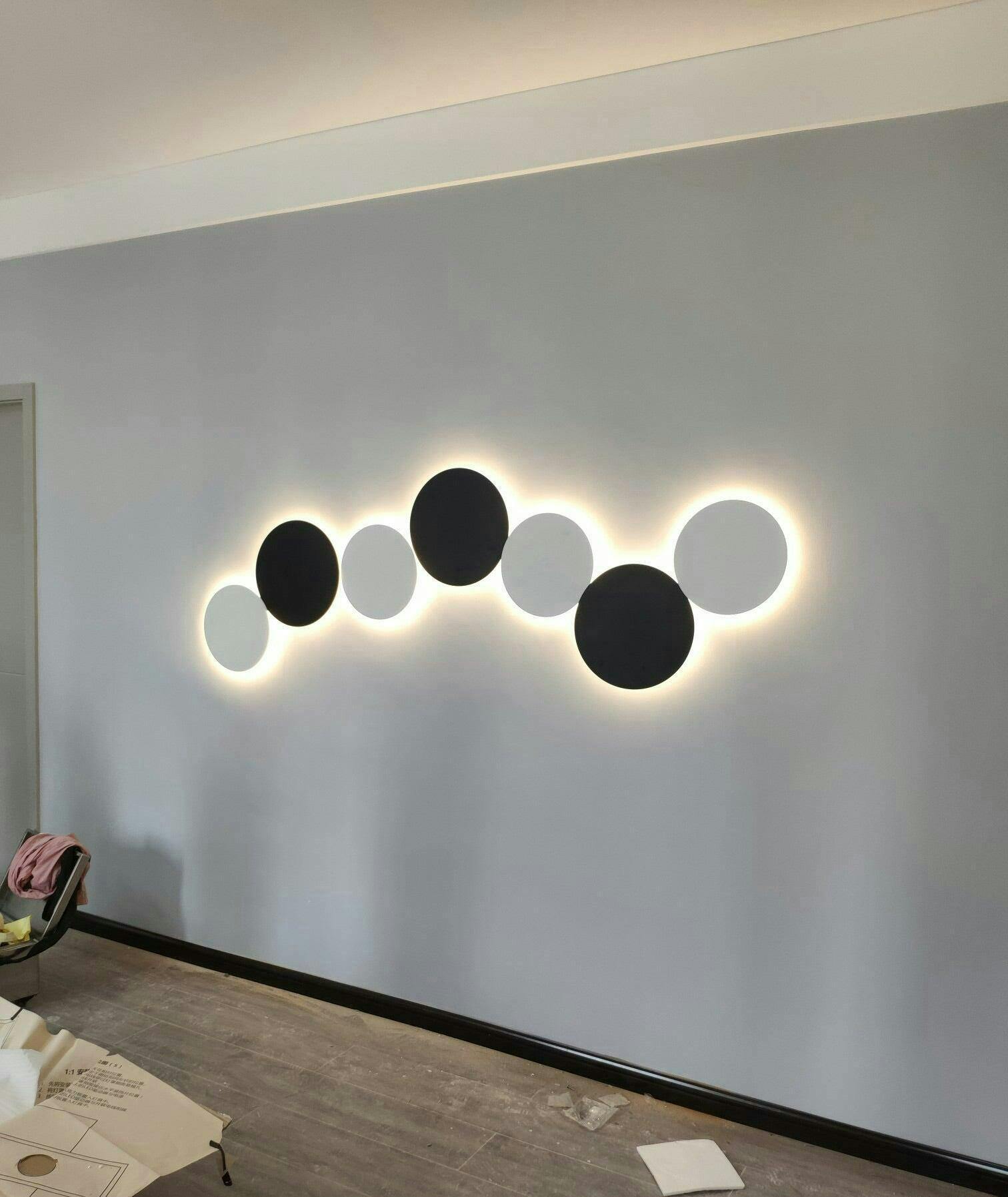 The designer created the Geometric Disc Wall Lamp as an addition to the Geometric Disc Wall Lamp, allowing customized lighting compositions to be conceived based on the same formal idea.‎