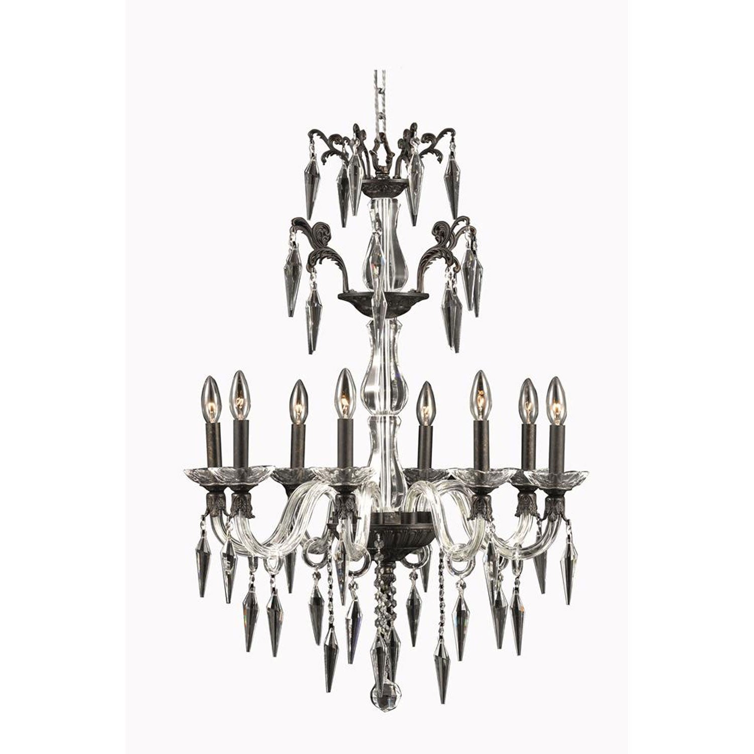 Grande Dark Bronze Eight-Light Chandelier with Elegant Cut Crystal