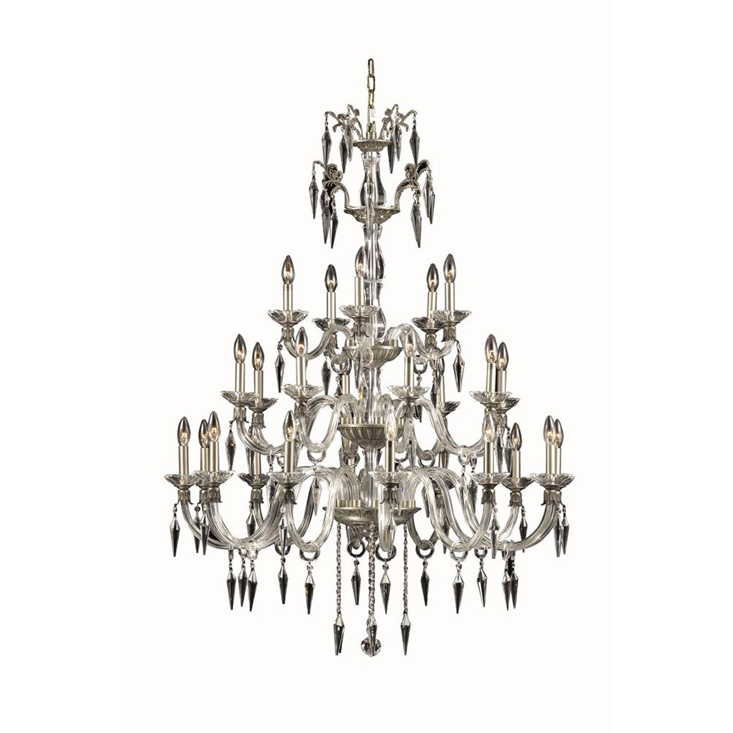 Grande Pewter 25-Light Chandelier with Elegant Cut Crystal