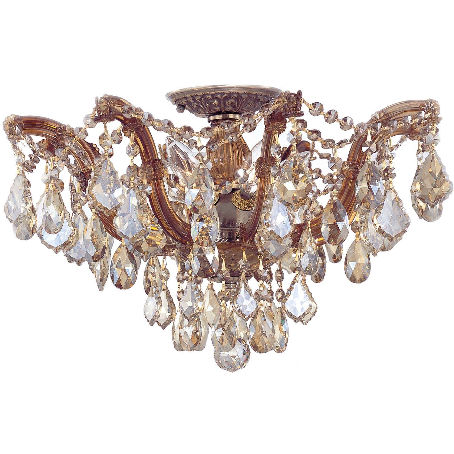 Group Maria Theresa Antique Brass Five-Light Semi Flush Mount with Golden Teak Swarovski Elements Crystals