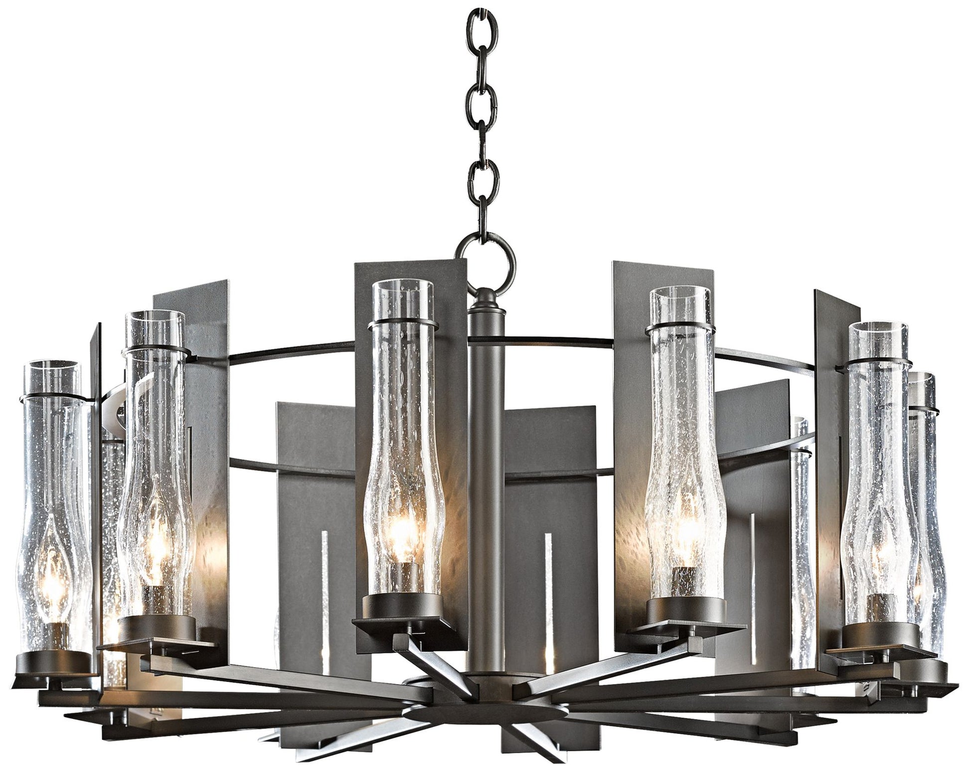 Hubbardton Forge New Town 30"W Smoke 10-Light Chandelier