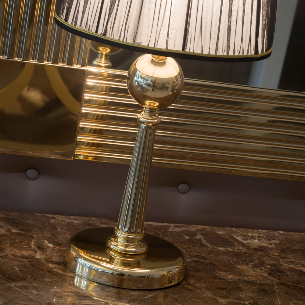 China Designer Brass Table Lamp. This stylish modern table lamp provides a warm luxurious atmosphere, with more than a touch of elegant glamour in a variety of settings.Use in a bedroom, dining room, sittingroom, or as a handsome welcome in any hallway, truly versatile.
