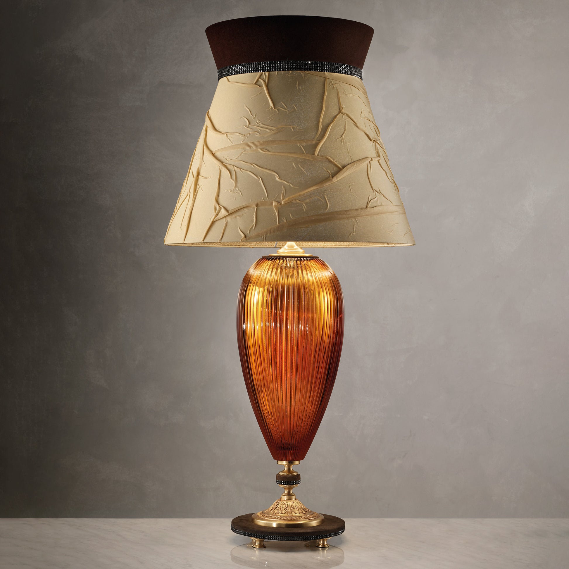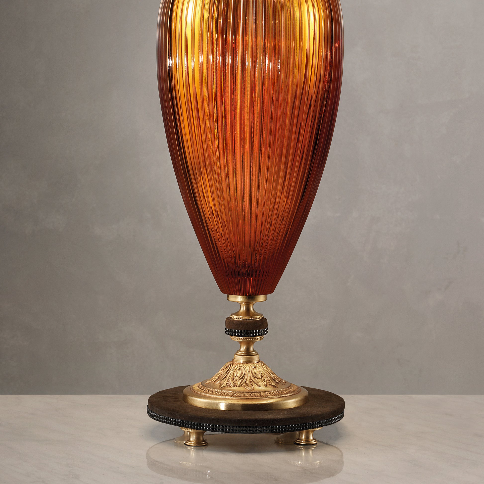 The Large Contemporary Amber Cut Crystal Table Lamp is truly striking in its dimensions, the archetype of elegance. A simply stunning piece that would be perfect to add an opulent dash of grandeur to your home.