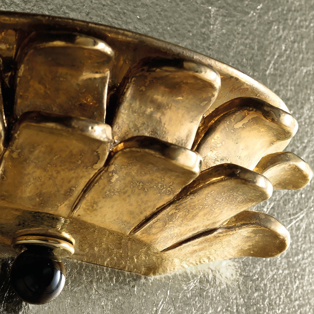 Measuring height 13 cm x width 30cm x depth 13 cm. This wall light is also available with a platinum plated finish as standard. Also offered as a bespoke item in alternative sizes and finishes.Prices vary subject to nature of changes. Uses 1 x 78 mm Stilo150 watt bulb, not included.