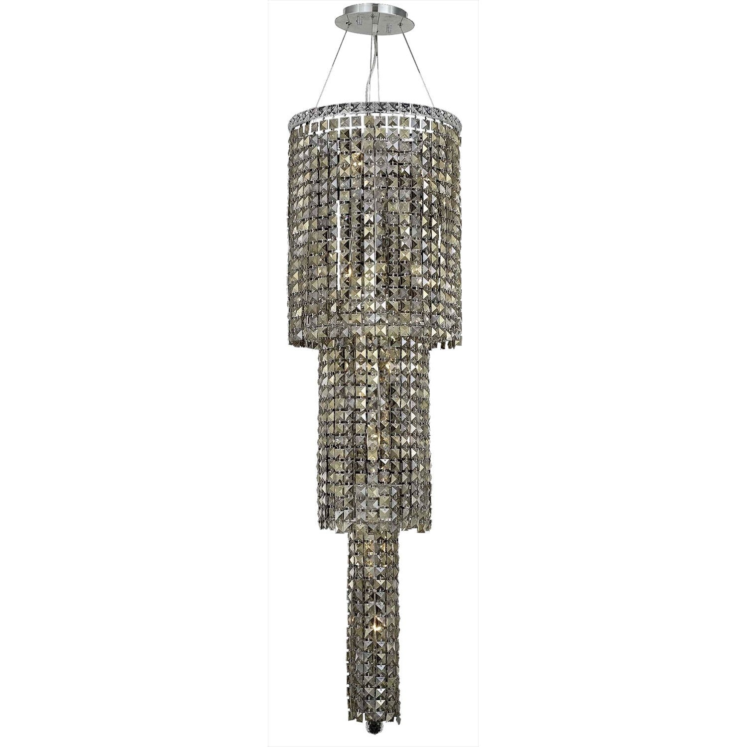 Maxim Chrome Twelve-Light 16-Inch Three-Tier Pendant with Royal Cut Golden Teak Smoky Crystal