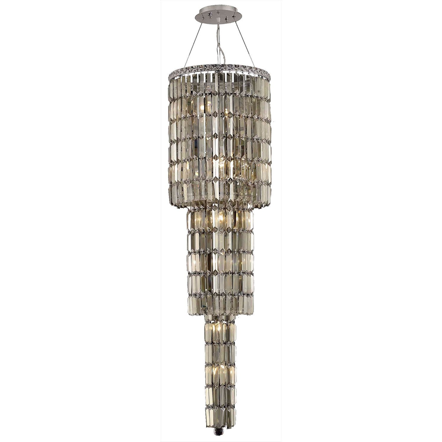 Maxim Chrome Twelve-Light 16-Inch Three-Tier Pendant with Royal Cut Golden Teak Smoky Crystal