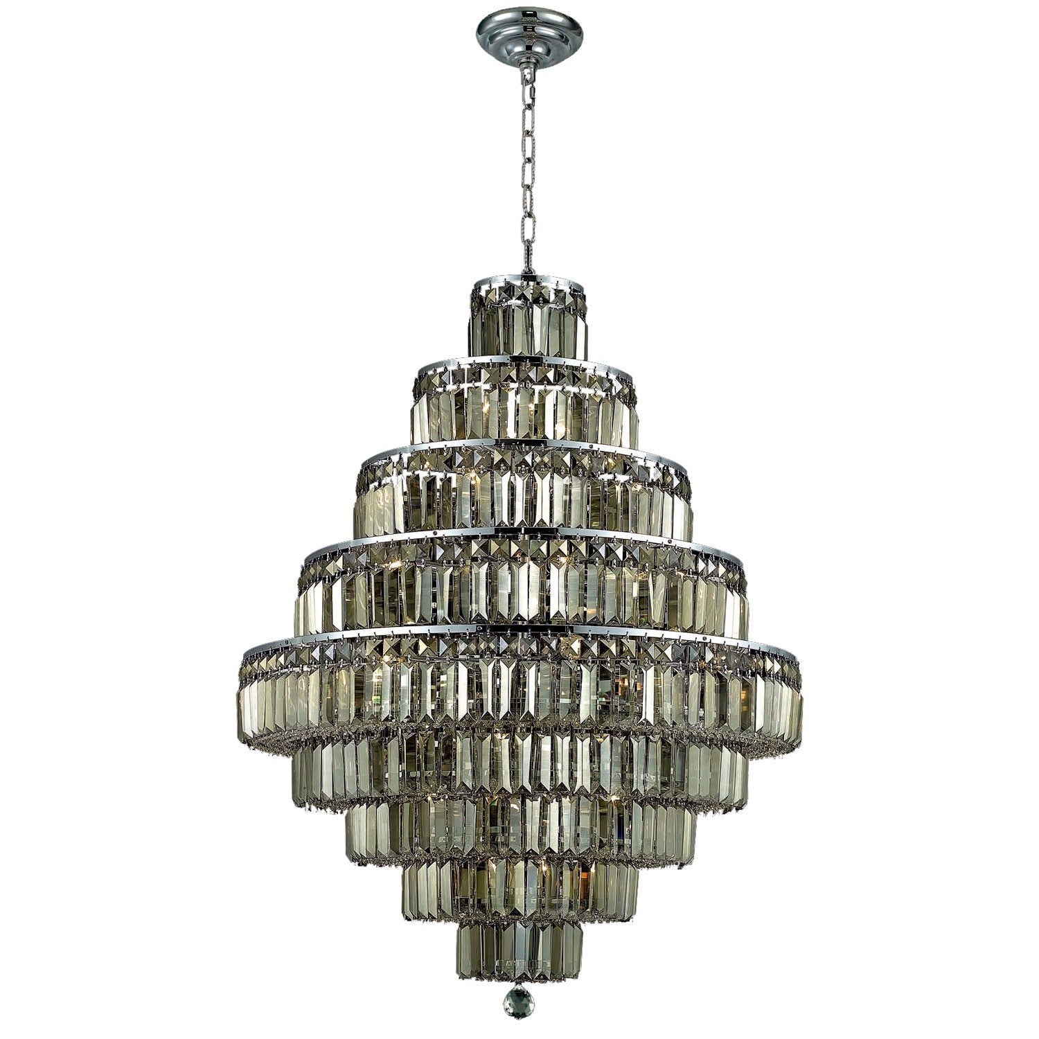 Maxim Chrome Twenty-Light 30-Inch Nine-Tier Chandelier with Royal Cut Golden Teak Smoky Crystal