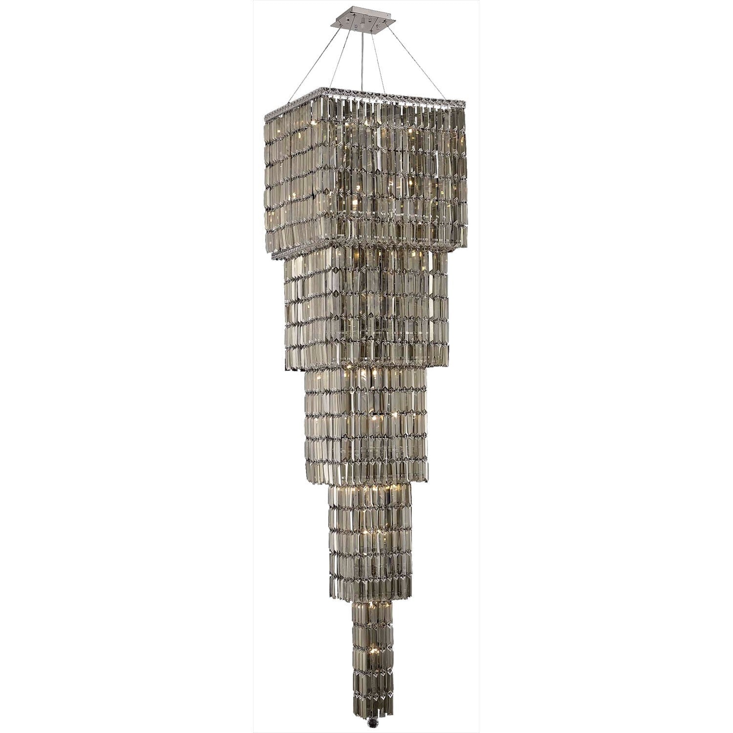 Maxim Chrome Twenty-Two Light 22-Inch Five-Tier Square Pendant with Royal Cut Golden Teak Smoky Crystal