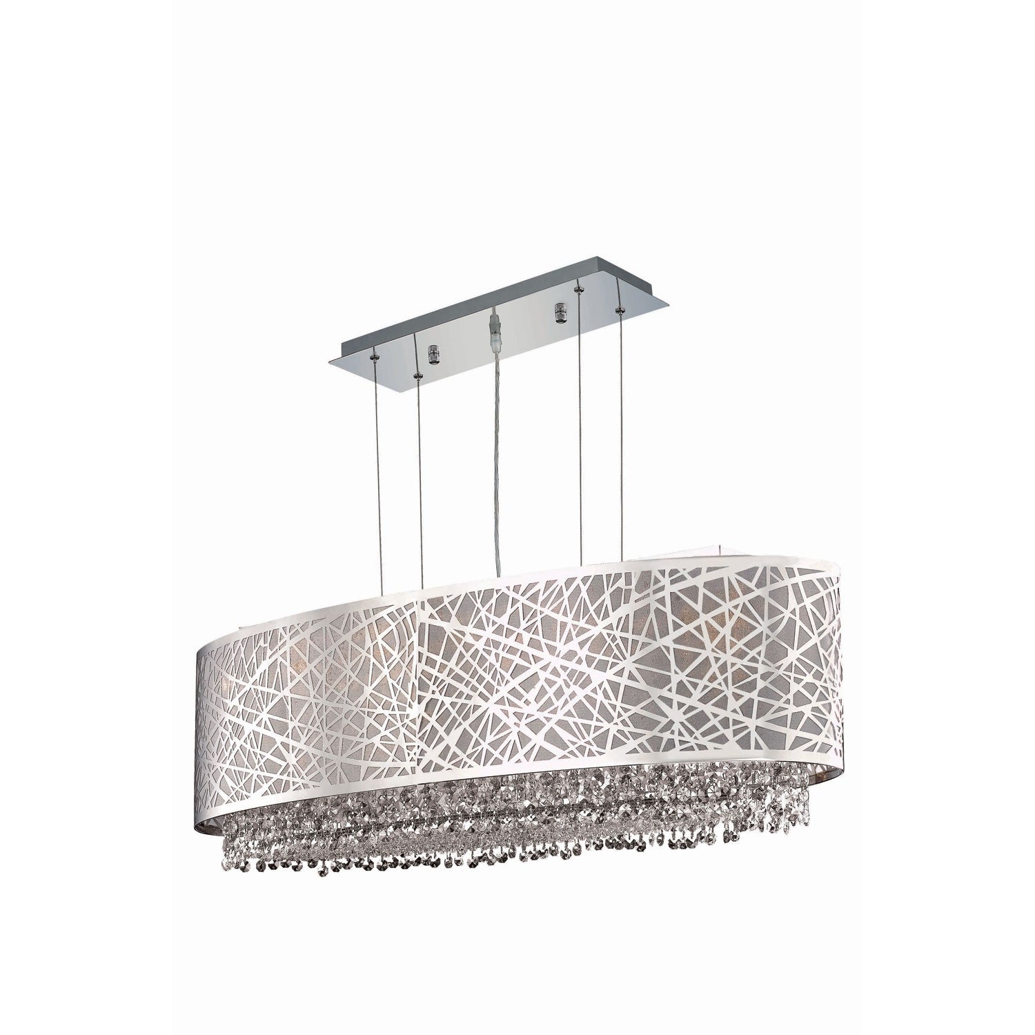 Moda Chrome Five-Light Silver Shade Pendant with Golden Teak and Clear Royal Cut Crystal