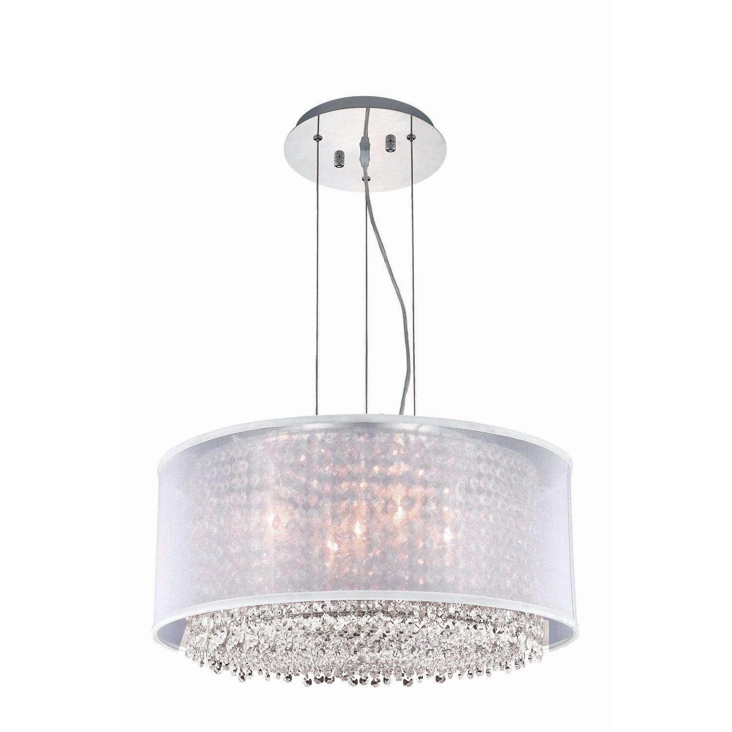 Moda Chrome Five-Light Silver Shade Pendant with Rosaline and Clear Royal Cut Crystal