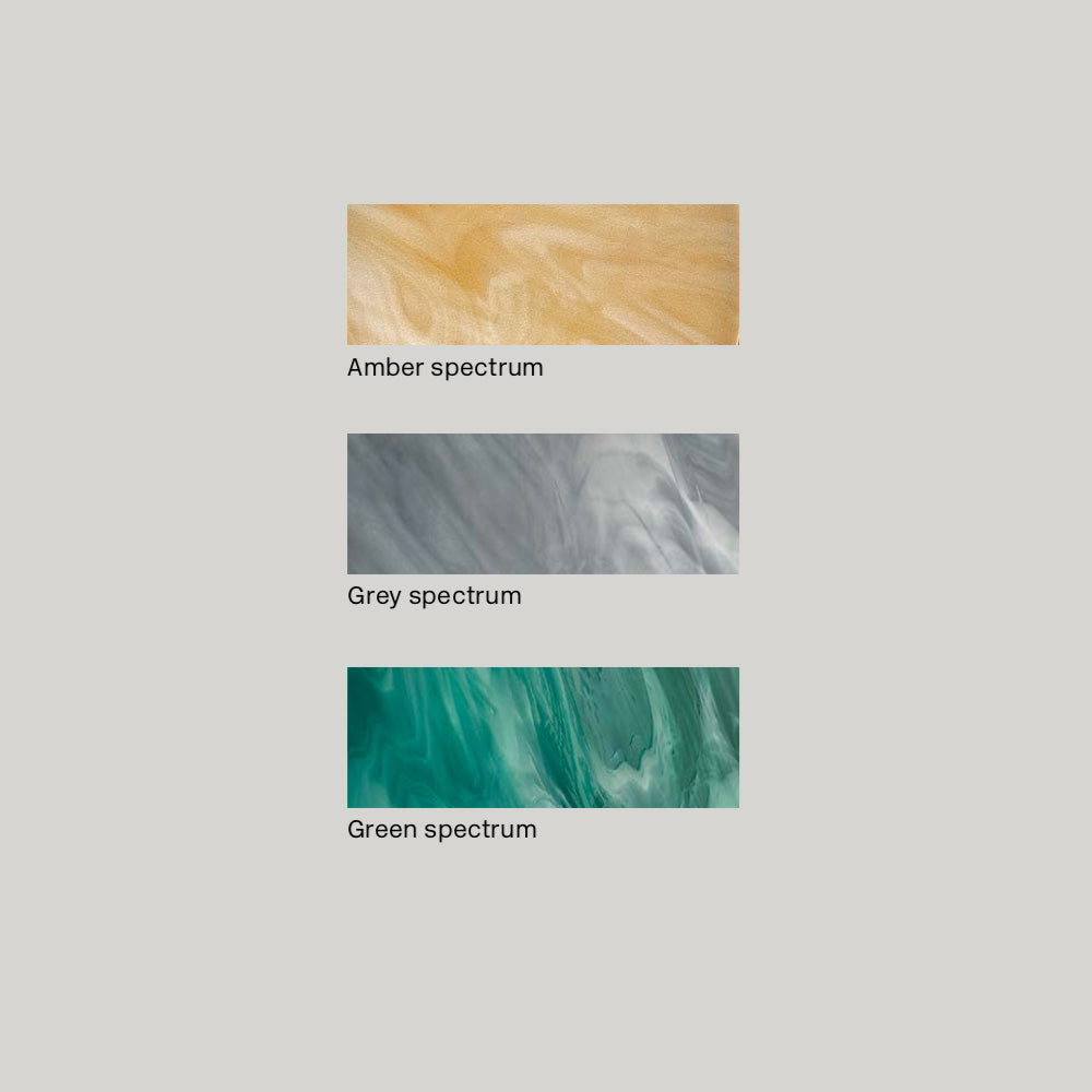 This modern LED floor lamp features a metal frame with a burnished brass finish, housing a striking spectum glass diffuser. LED information, LED x 14,4W CRI>95 3000 K 1296 Nominal lm. Dimmable, with own button. Available in Amber spectrum, Grey spectrum and Green spectrum glass. Other metal finishes are also an option, prices will then vary.
