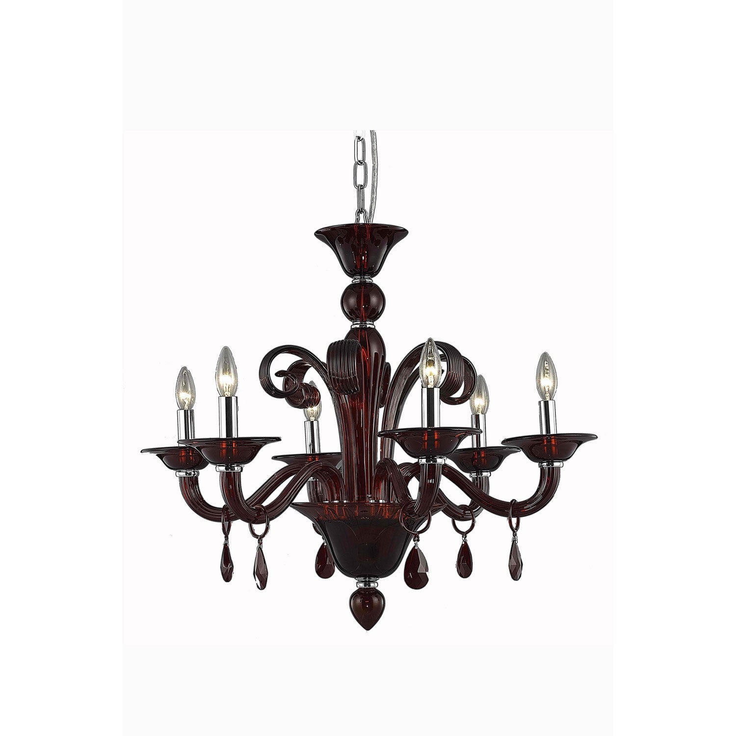 Muse Red Six-Light Chandelier with Bordeaux/Red Royal Cut Crystals