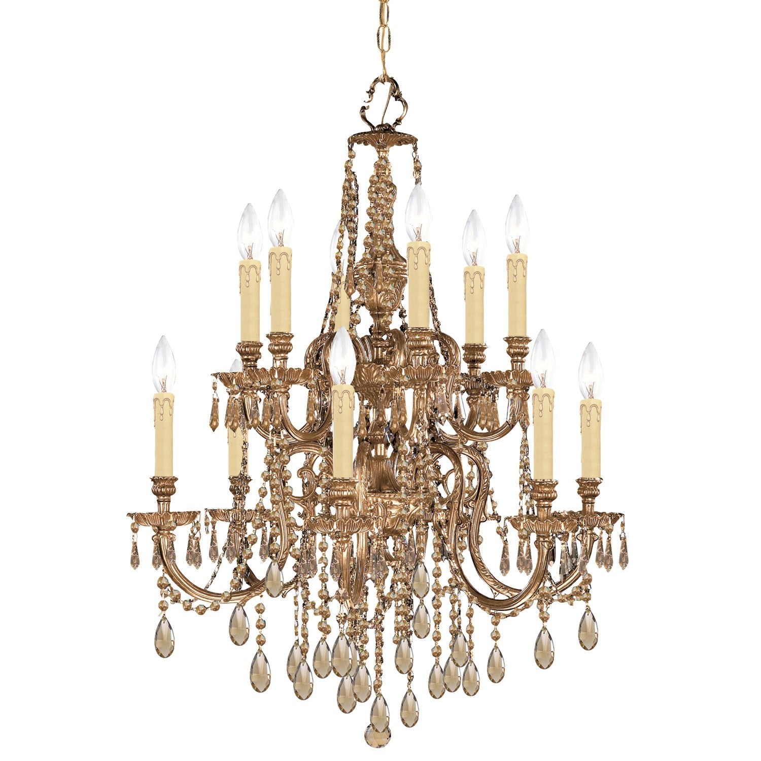 Olde Brass Golden Teak Two-Tier Chandelier