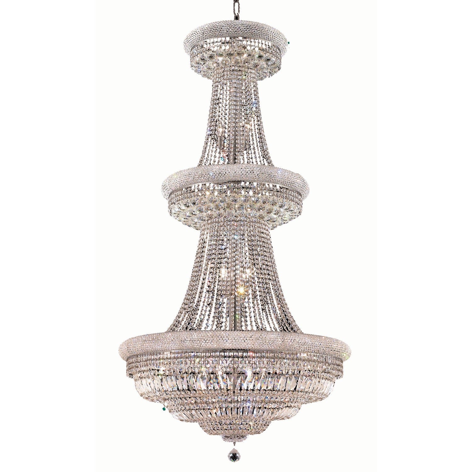 Primo Chrome Thirty-Two Light 36-Inch Chandelier with Royal Cut Clear Crystal and Crystal Drop