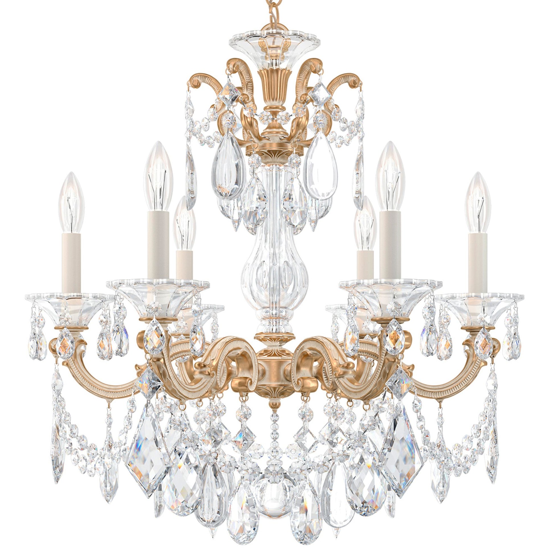 The La Scala chandelier is bedecked with gorgeous Schonbek crystal.