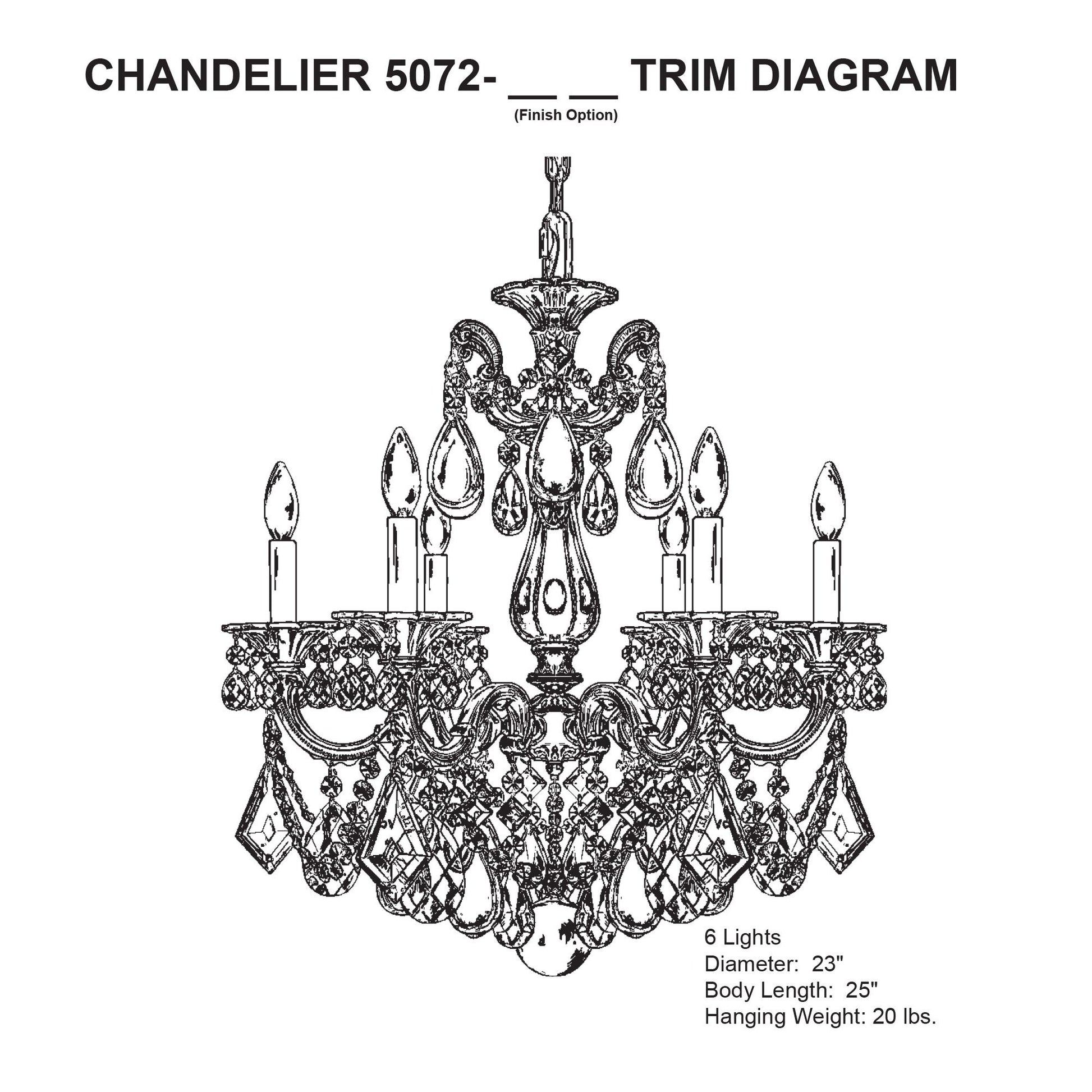 • Takes six 60 watt candelabra bulbs (not included).