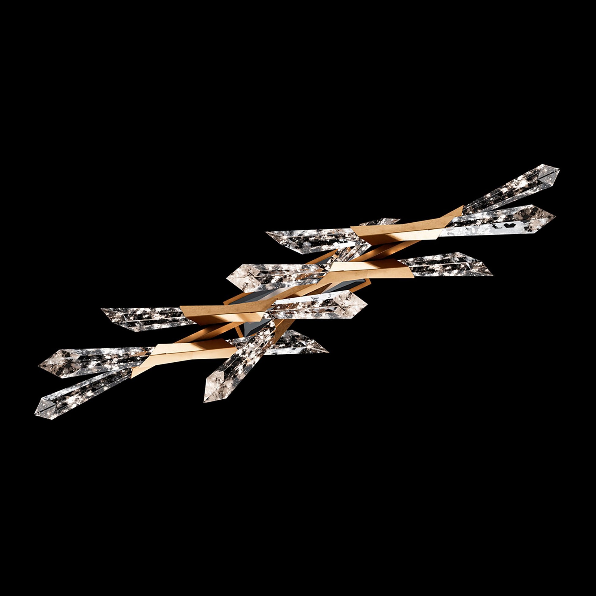 • Aged brass finish over steel frame. Optic haze quartz crystal diffusers.