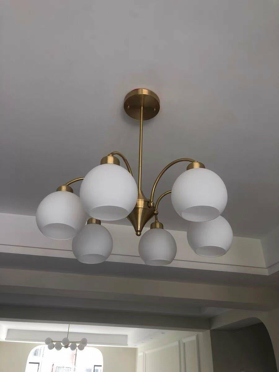This Sculptural pendant mixes finishes with art deco-inspired flare. The white glass shade coloring of its a soft, calming glow. It's just the thing to add illuminating intrigue to your living room or dining room.