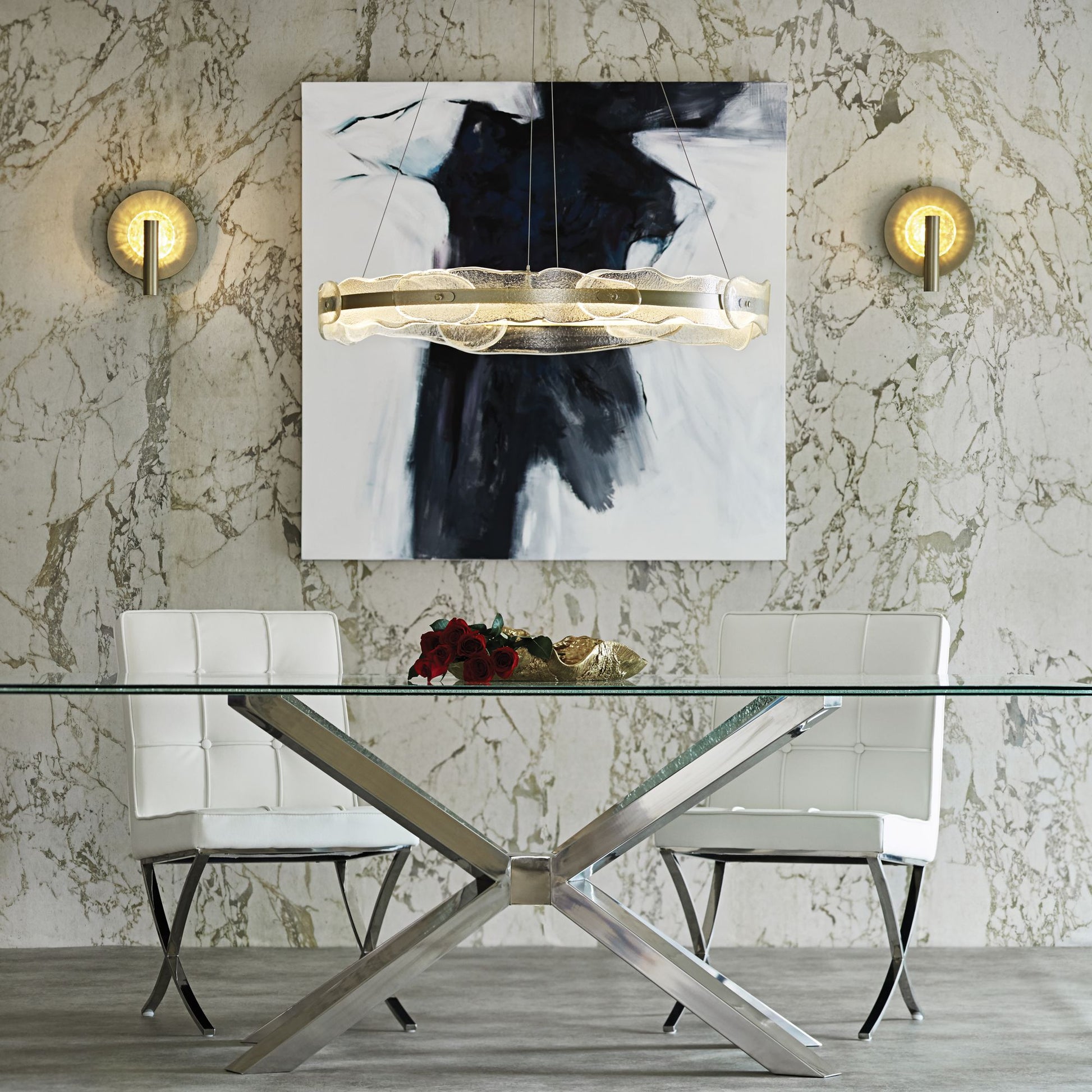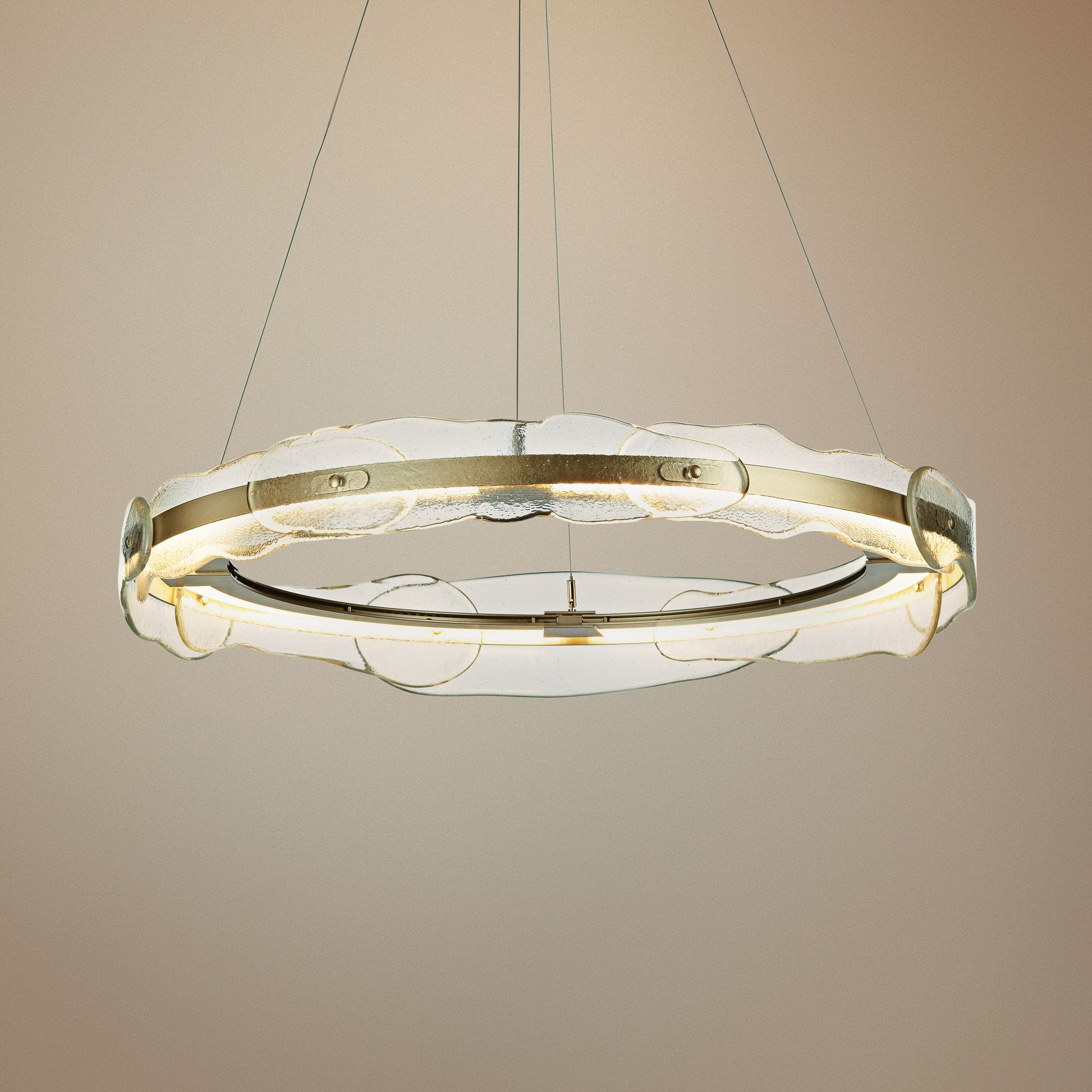 • Soft gold finish. Hand-made textured glass.