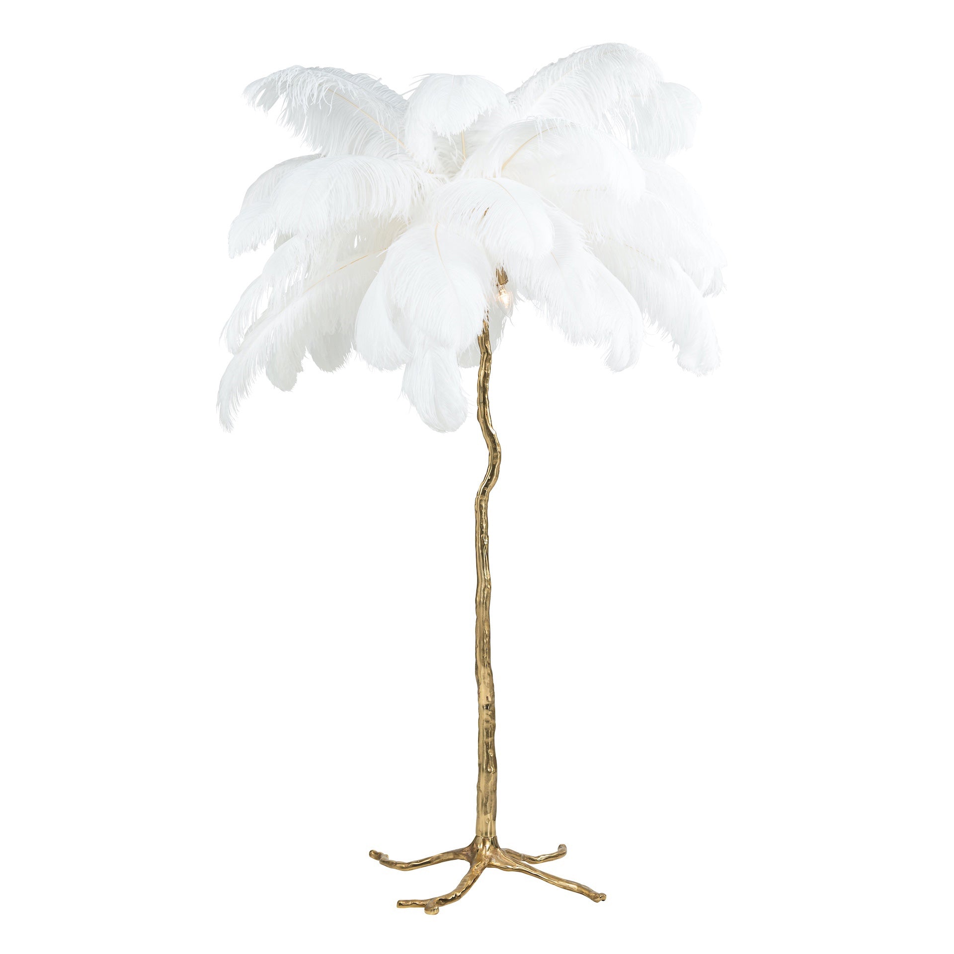The Striking Palm Tree Floor Lamp With White Feathers,providing a unique feature for any interior.
