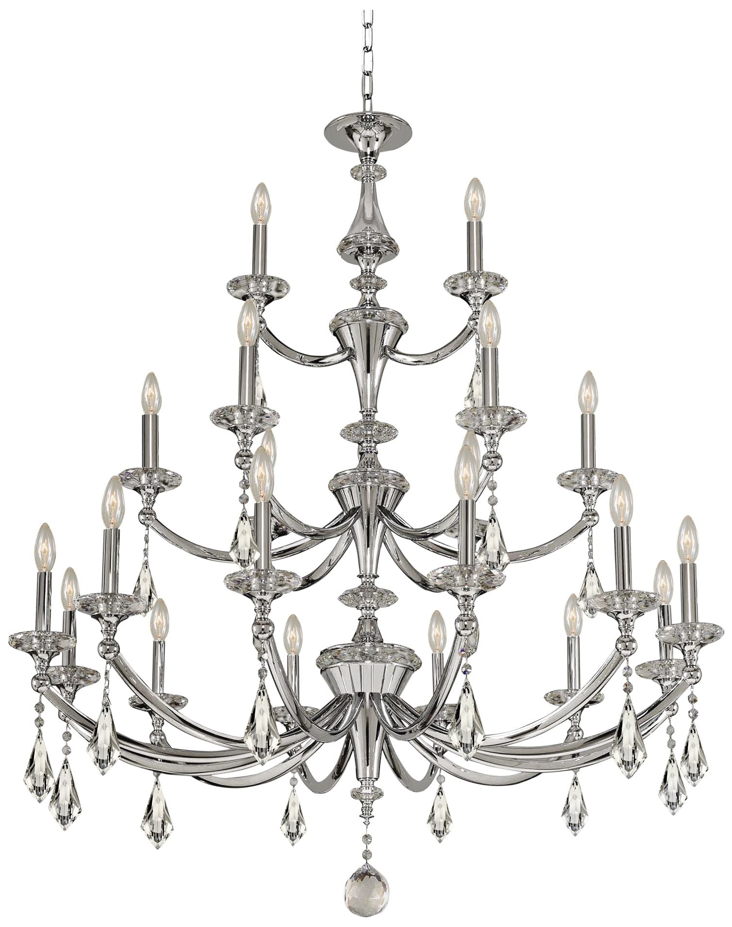 Dramatic over you dining table or in the foyer, this 21-light chandelier shows off multi-faceted crystals.