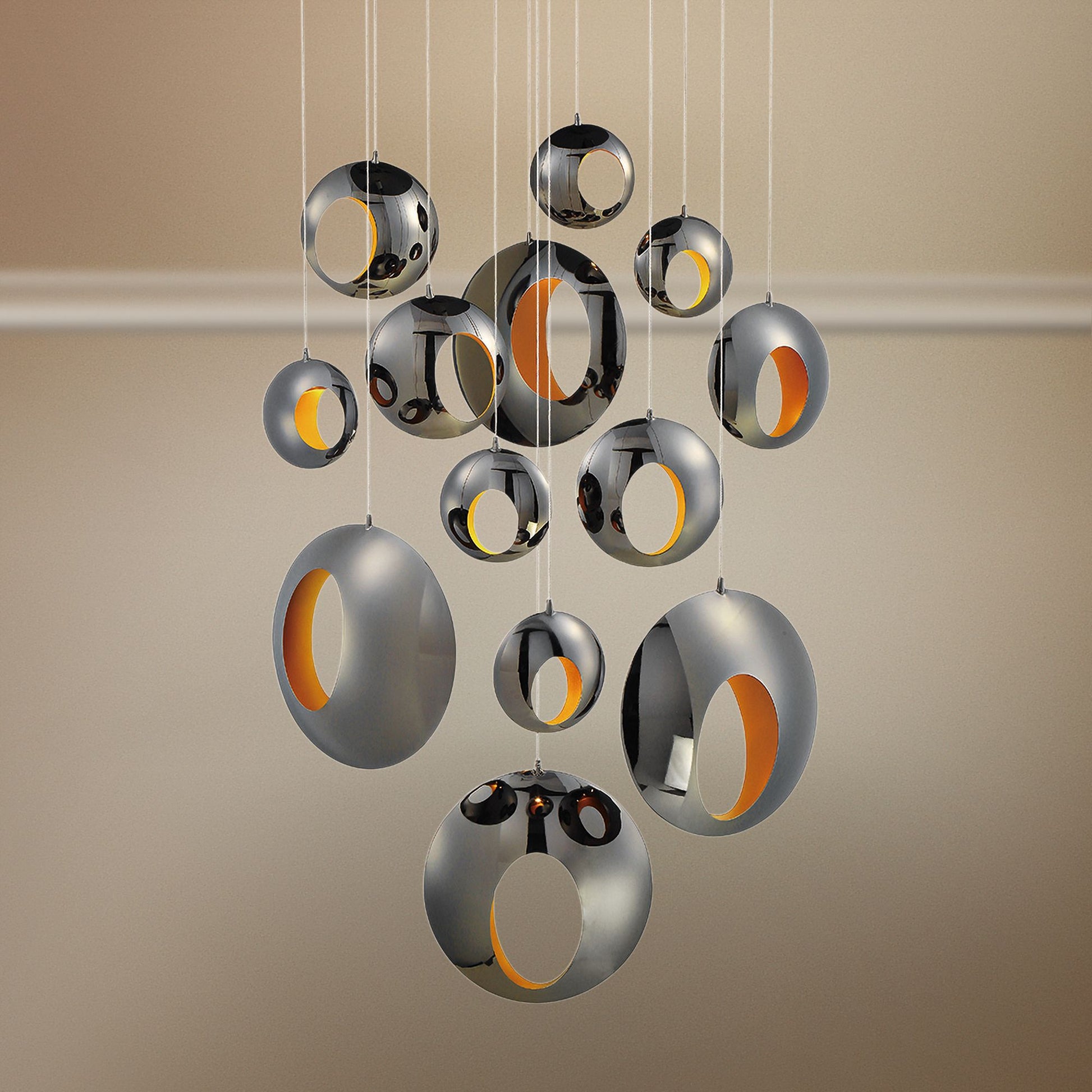 Fun retro style makes this blackened chrome and gold LED multi-light pendant an exceptional choice.