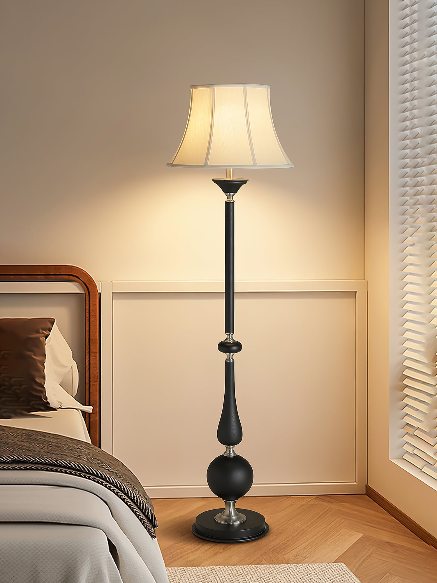 The Belfort Classic floor lamp from sunweartfurniture perfectly blends timeless elegance with exquisite craftsmanship. Its slender black stem is accented with metal details, while its elegant, flared fabric shade emits a warm, captivating glow. The sculptural base cleverly blends curves and geometric shapes, adding visual interest and a sense of stability. Perfect for a living room, study, or reading nook, this floor lamp offers both refined and practical lighting, making it a versatile addition to any interior.