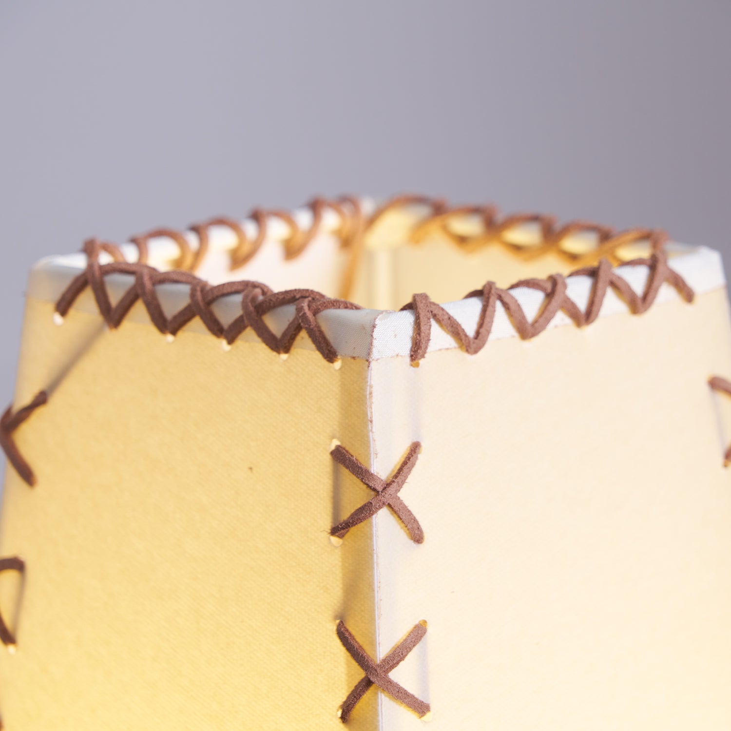 The Estela Table Lamp expertly combines refined craftsmanship with modern elegance. Its tailored silhouette features a tapered grey and white shade accented by handcrafted contrasting stitching, evoking vintage design with a contemporary twist. A sturdy geometric base with a subtle brass knob provides both stability and a sophisticated finishing touch. Compact and stylish, Estela is perfect for adding understated charm and structured form to any room.