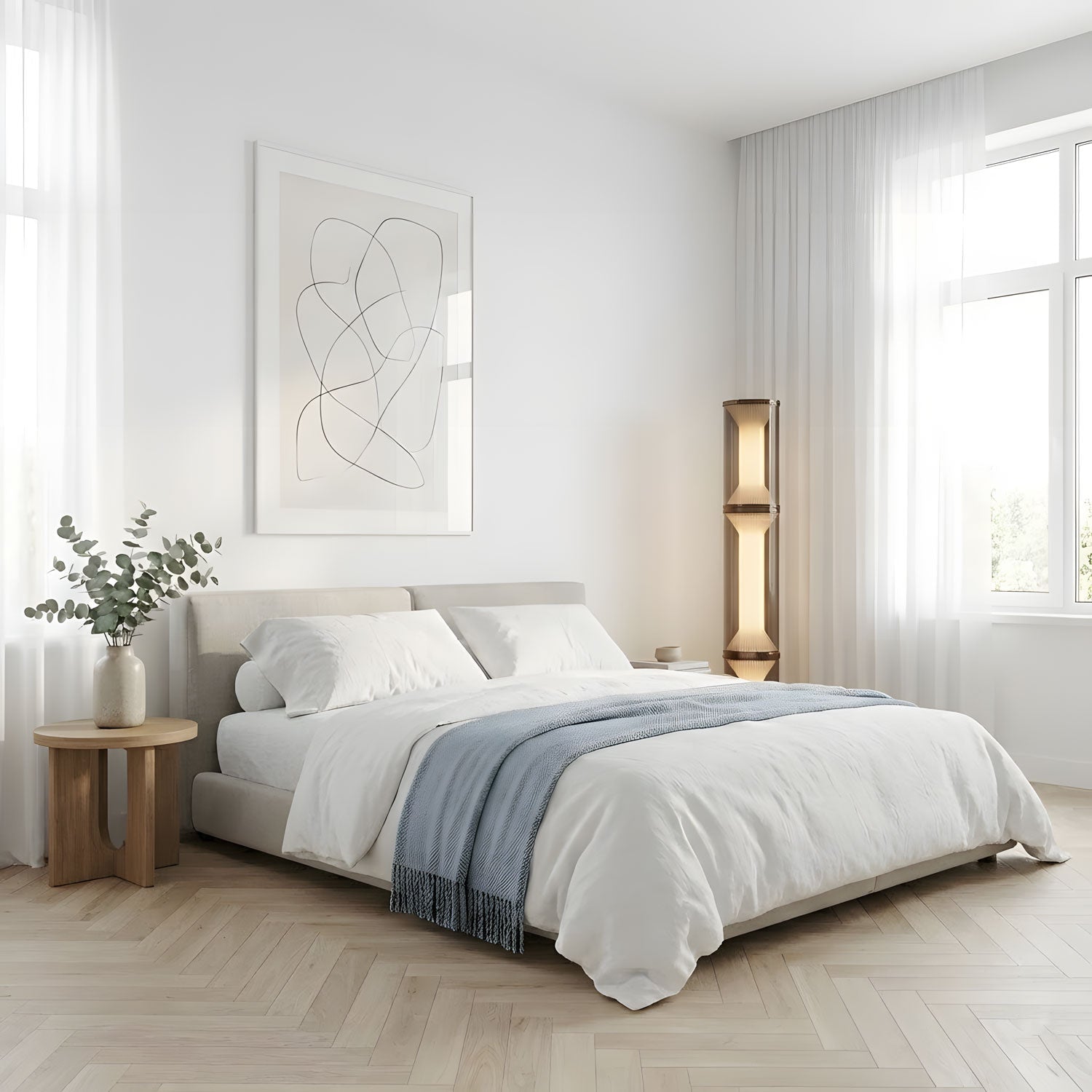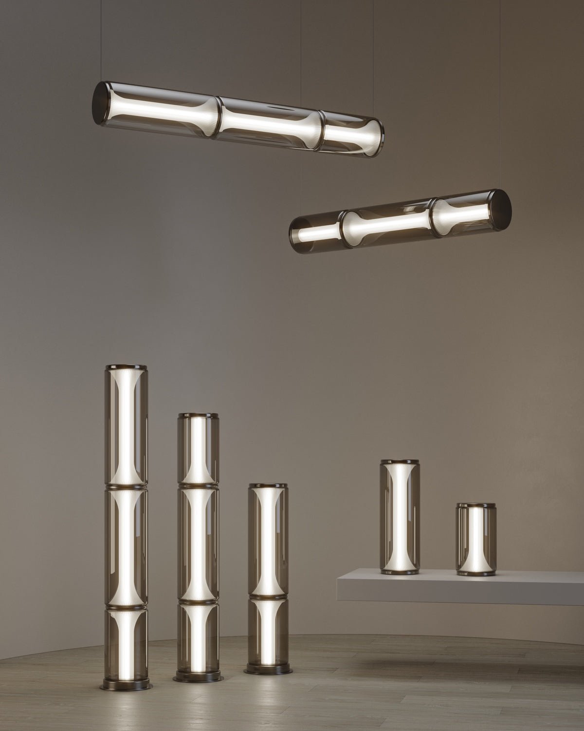 The Miles Floor Light showcases a sophisticated arrangement of fluted, horn-like forms encased in clear glass. Each hand-blown piece stacks to create a refined column that emits a warm, inviting glow. This expertly crafted lamp combines artisanal glassmaking with contemporary design, making it an elegant focal point for modern living spaces.