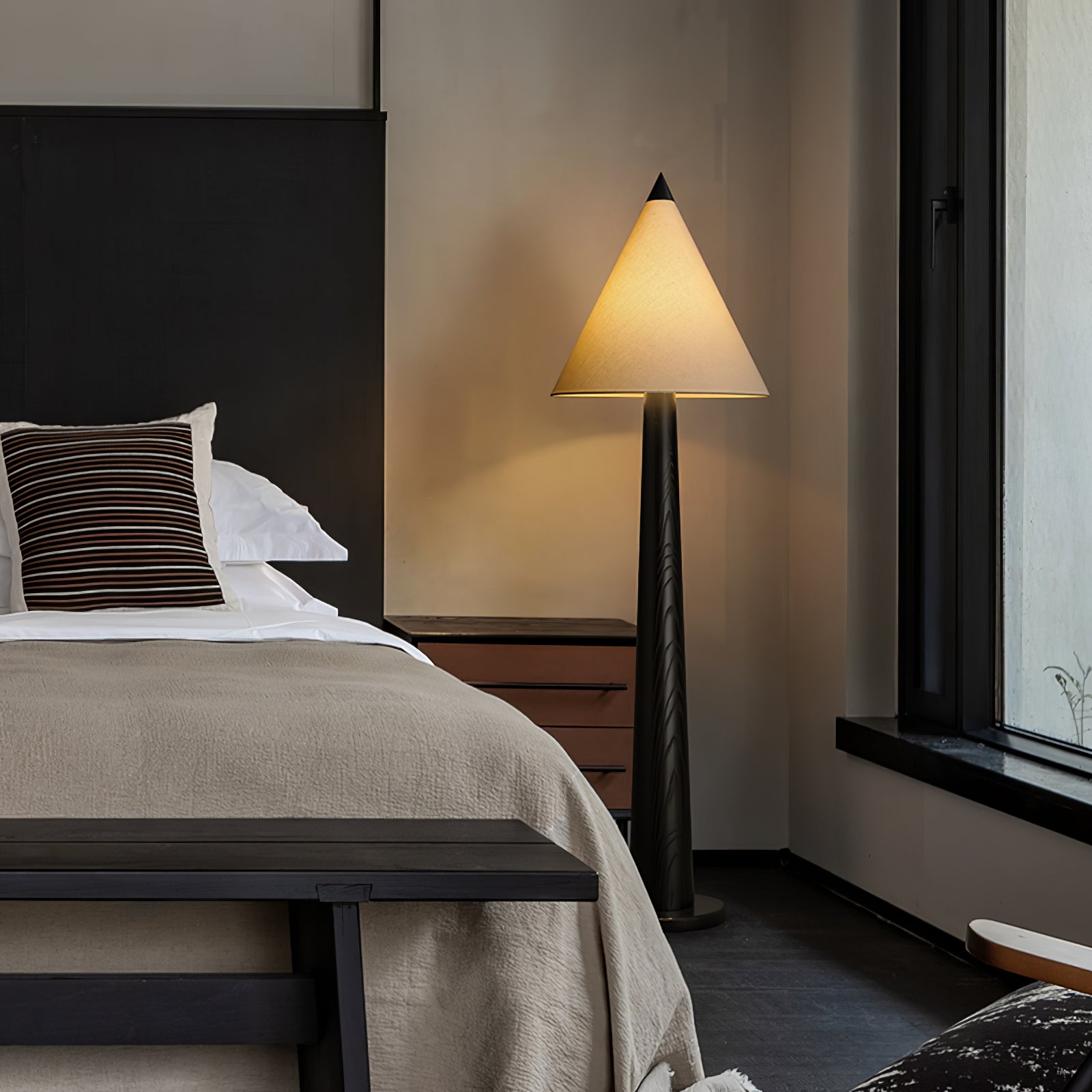 The Pinecone Wooden Floor Lamp by sunweartfurniture seamlessly blends minimalist design with natural warmth. A hand-turned pine wood base tapers elegantly into a striking conical linen shade—reminiscent of a pine cone’s silhouette. When illuminated, it casts a soft, inviting glow, perfect for bedside tables, minimalist living spaces, or cozy reading nooks. This beautifully crafted lamp adds both visual interest and comforting atmosphere to any interior.