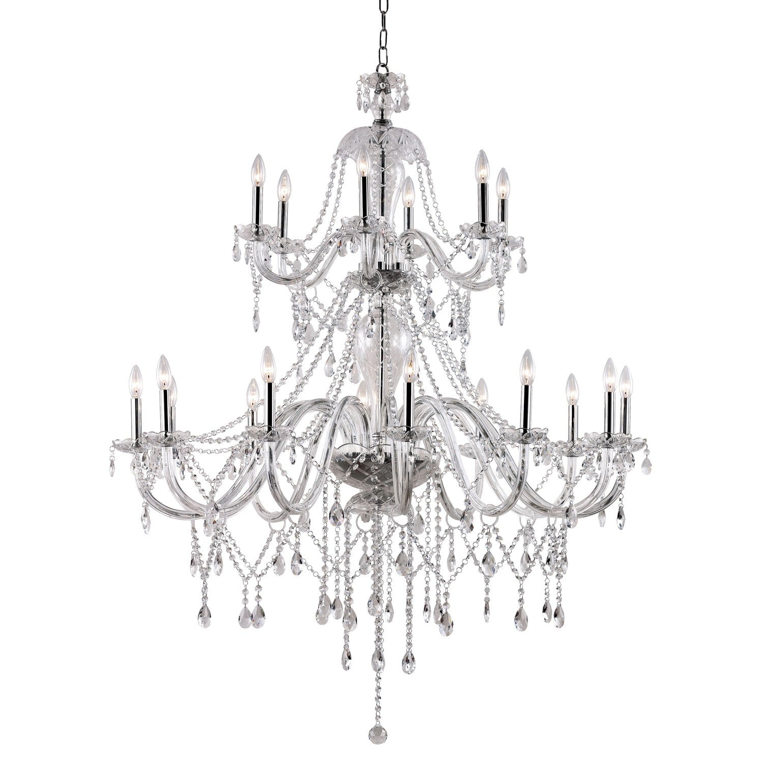 Polished Chrome Crystal Fountain Weeping 18 Light Chandelier with Clear Glass and Prisim Cut Clear Crystal Strands