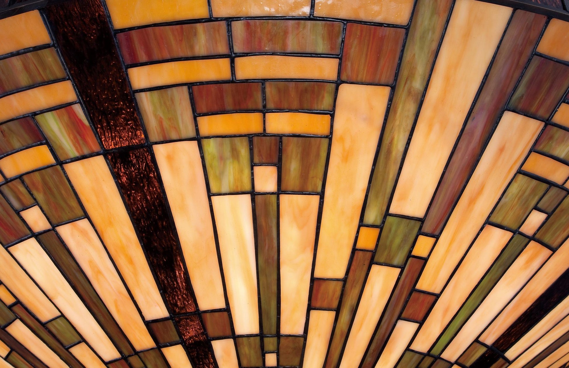 • Uses 615 pieces of art glass in warm shades of amber, bisque, and earthy green. Assembled using the copper foil soldering method.