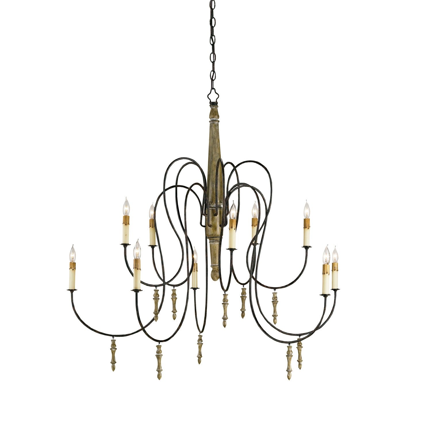 Rouleau Rust and Buff Brown Wood 10-Light Chandelier- Large