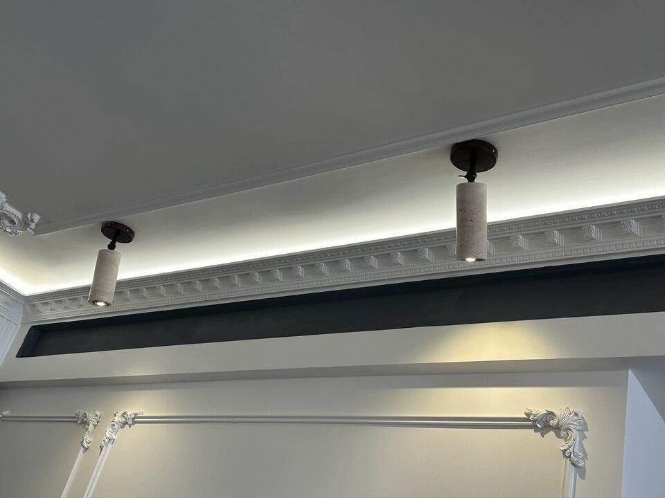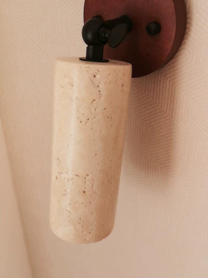 The sunweartfurniture Solis Stone Spotlight is a fusion of raw nature and refined craftsmanship. Featuring a meticulously sculpted travertine stone cylinder, complemented by a warm walnut wood ceiling mount and brass pivot, this spotlight exudes a timeless elegance. Its adjustable design allows for precise lighting, making it a versatile addition to contemporary interiors—perfect for accentuating artwork, creating ambient mood lighting, or adding a sophisticated touch to hallways and living spaces.