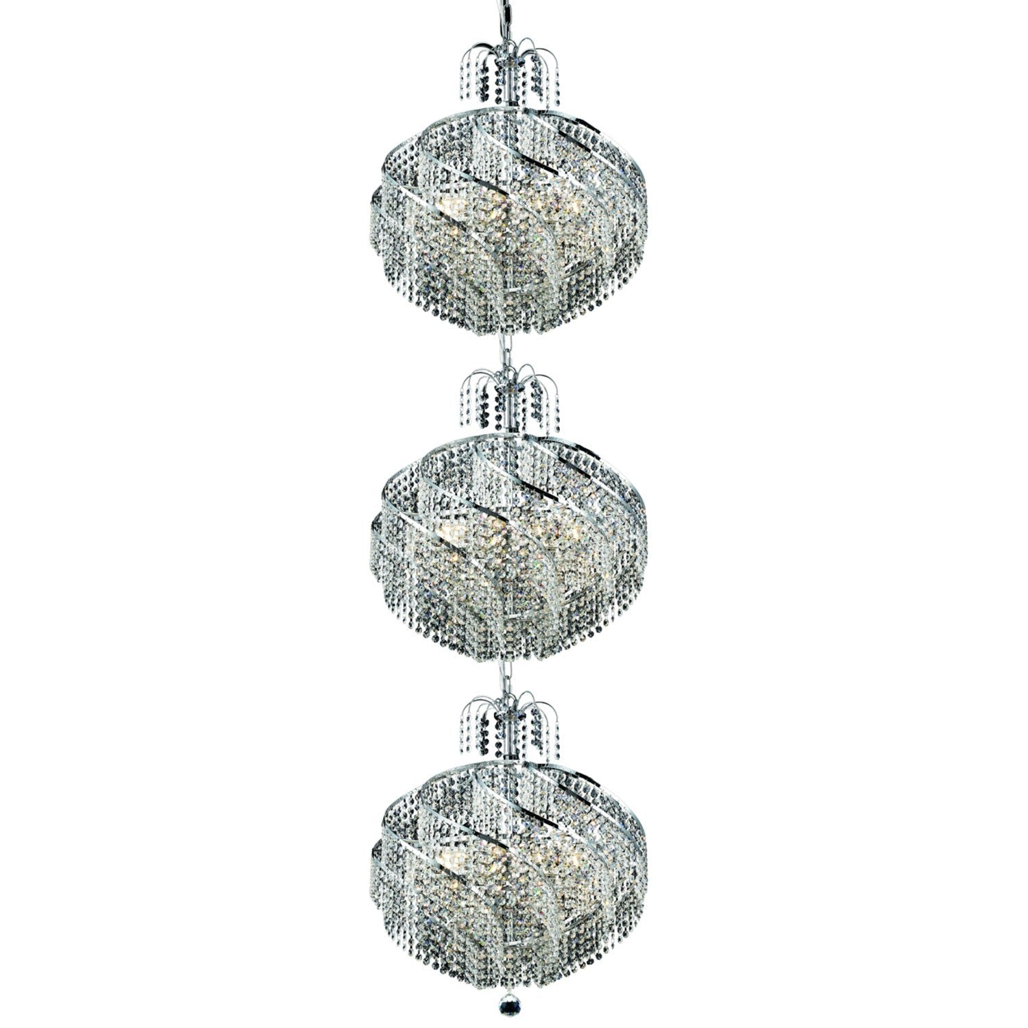 Spiral Chrome Thirty-Light 22-Inch Three-Tier Pendant with Royal Cut Clear Crystal